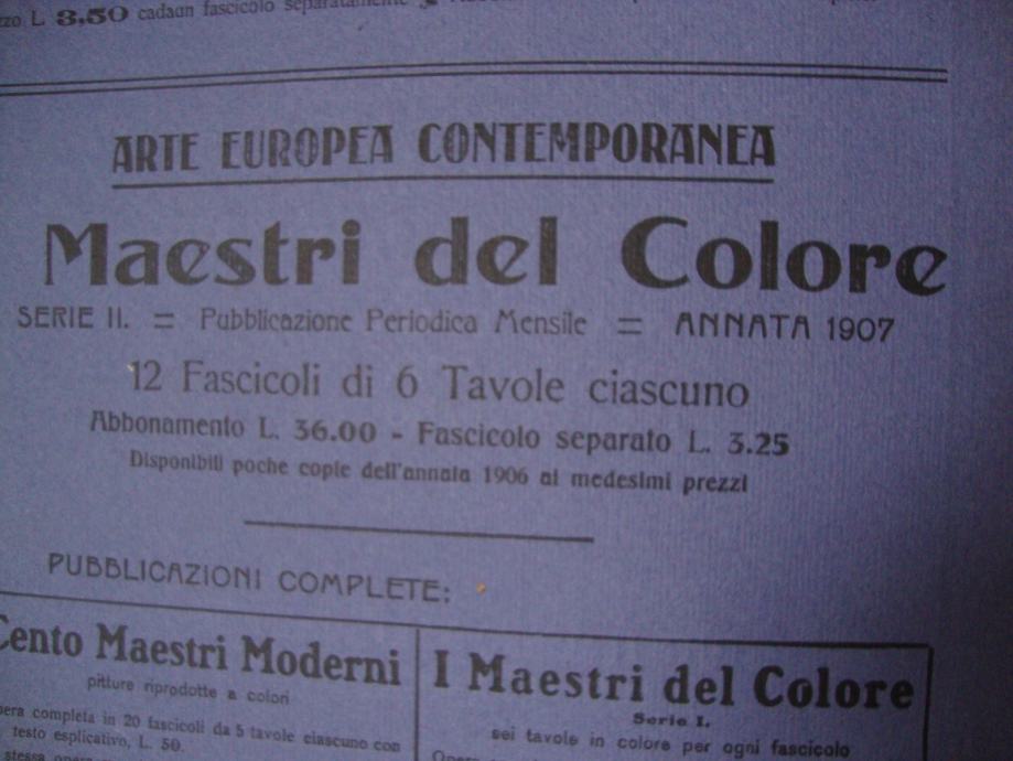 Stara grafika u boji iz 1907. godine dorađivana sa zlatnom bojom, takoder izrađena u Italiji sa izložbi poznatih svijetskih majstora u Europi