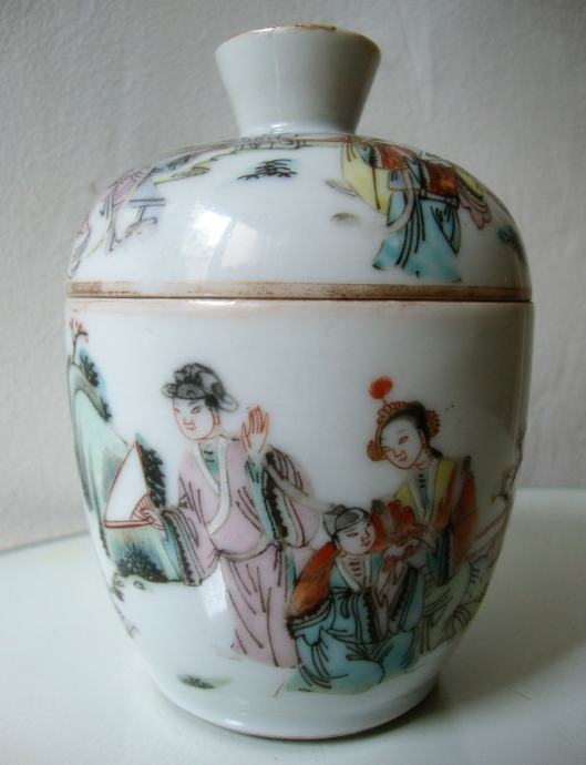 Krasna kineska porculanska posuda sa poklopcem ručno oslika i ukrašena pozlatom za serviranje riže