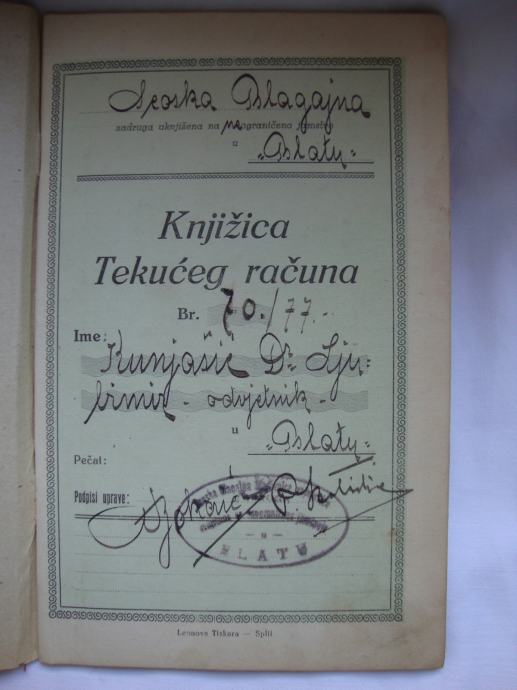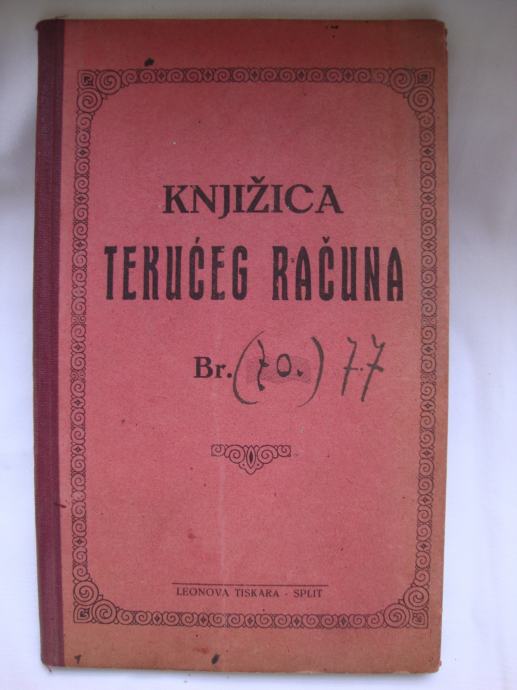 Stara predratna knjižica tekučeg računa iz 1920 -setih / Leonova tiskara Split,U upotrebi od 1927.godine -1942. godine