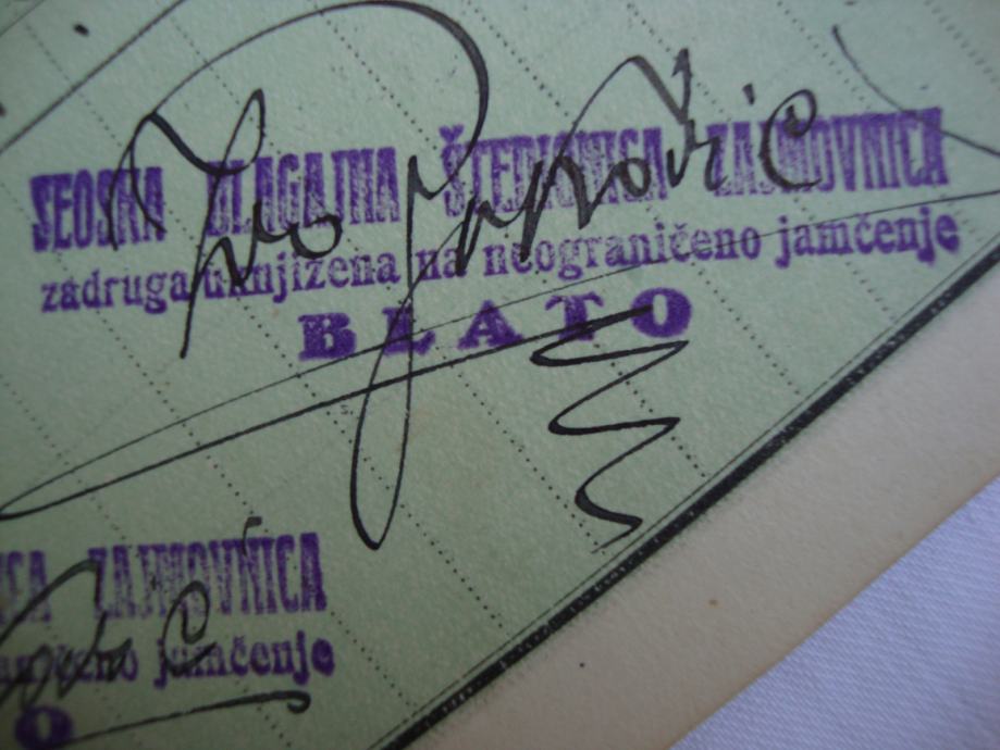 Seoska blagajna ,ovalni žigovi otok Korčula mjesto Blato+žig seoska blagajna štedionica zadruga uknjiženja na neograničeno jamčenje Blato-rijetko