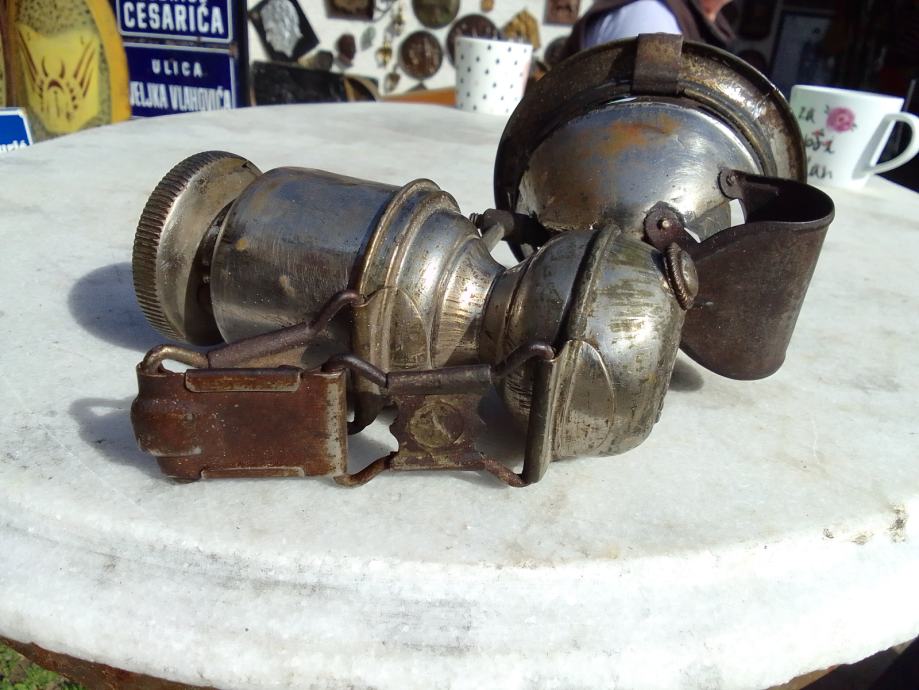 Prekrasna stara lampa za bicikl,nedostaje samo prednje staklo,ostalo ima sve.pogledajte moje ostale oglase starina i antikviteta