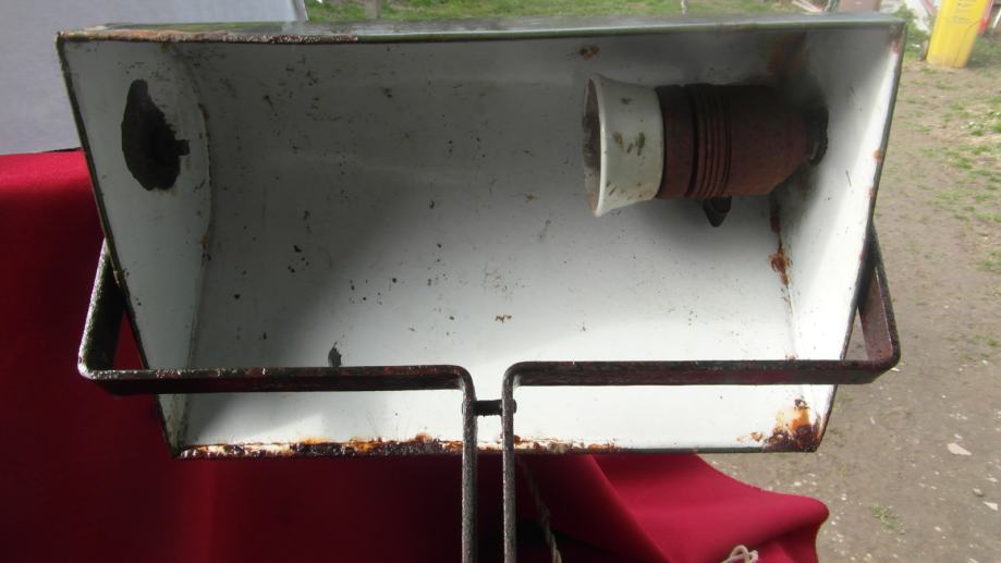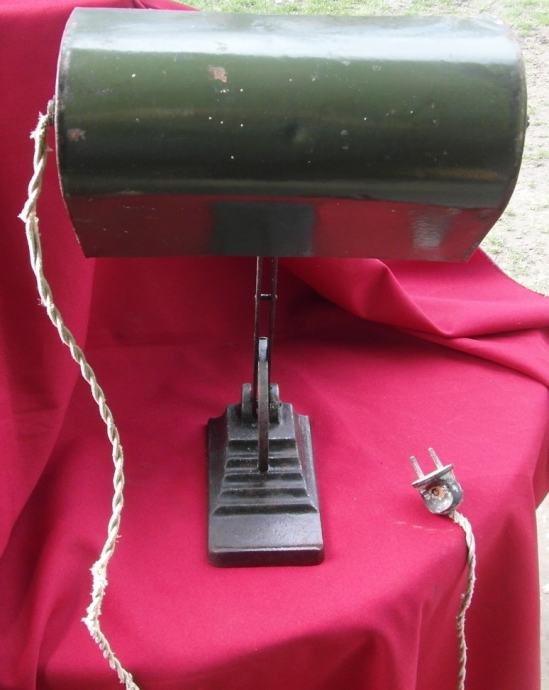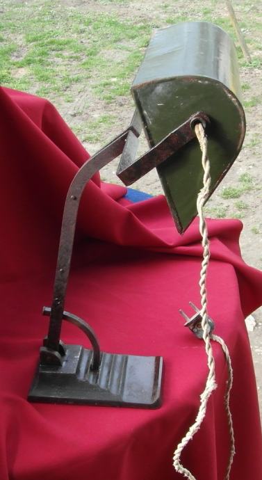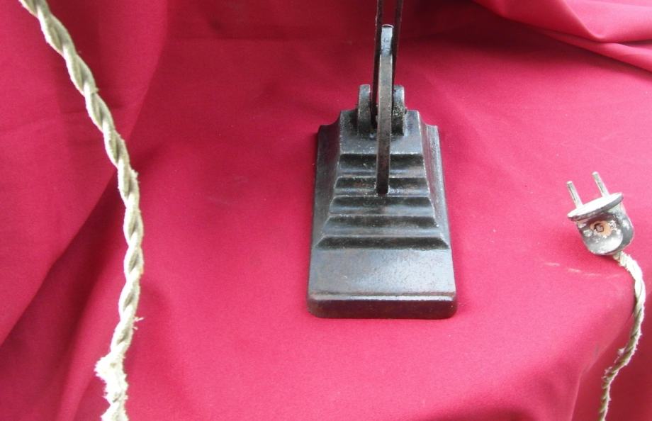 Stara lampa sa postoljem od ljevanog čelika i emajliranim sjenilom