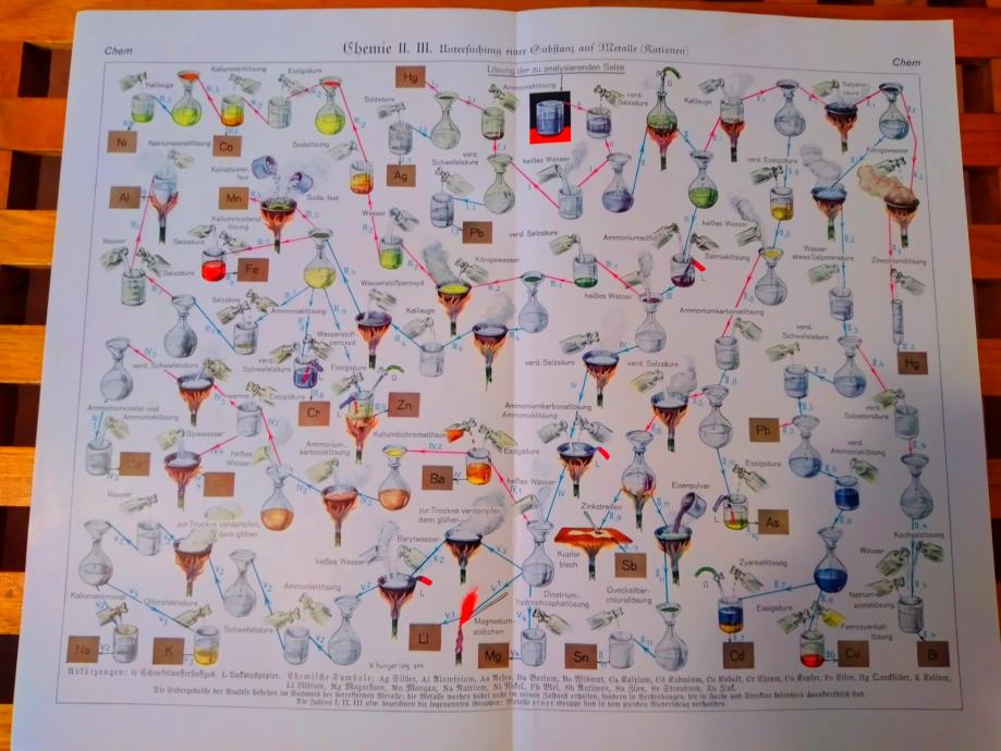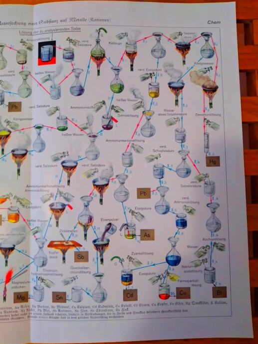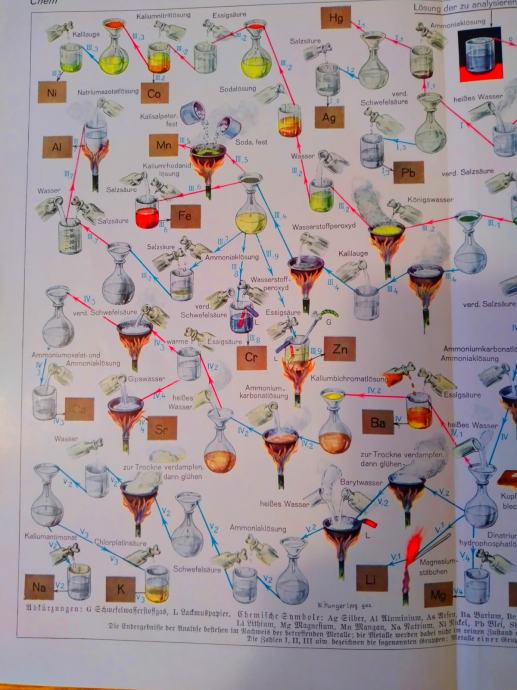 STARA LITOGRAFSKA PLOČA KEMIJA ISPITIVANJE TVARI NA METALE KATIONE