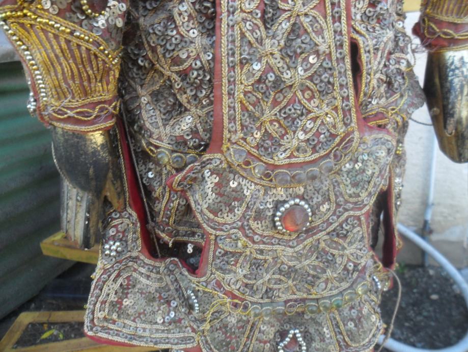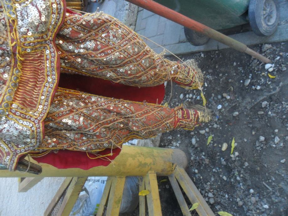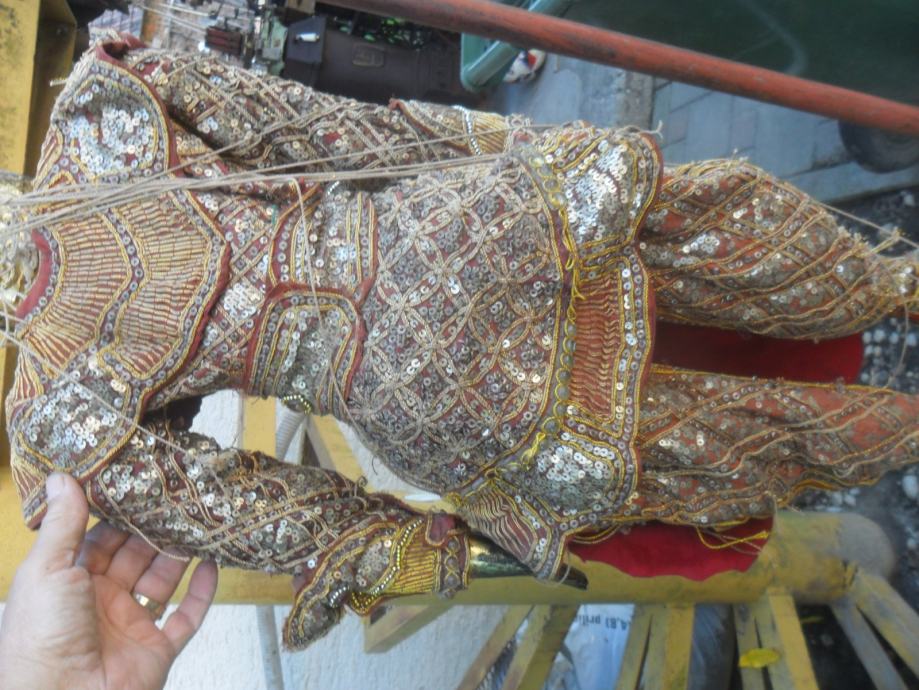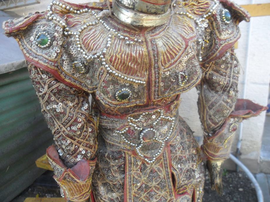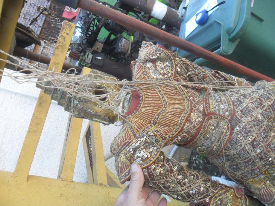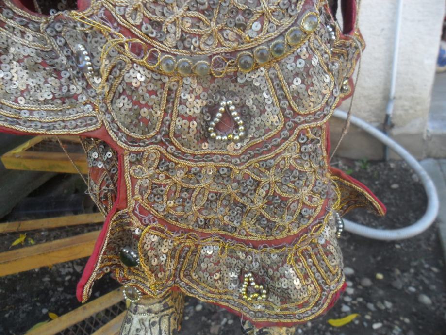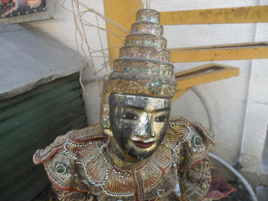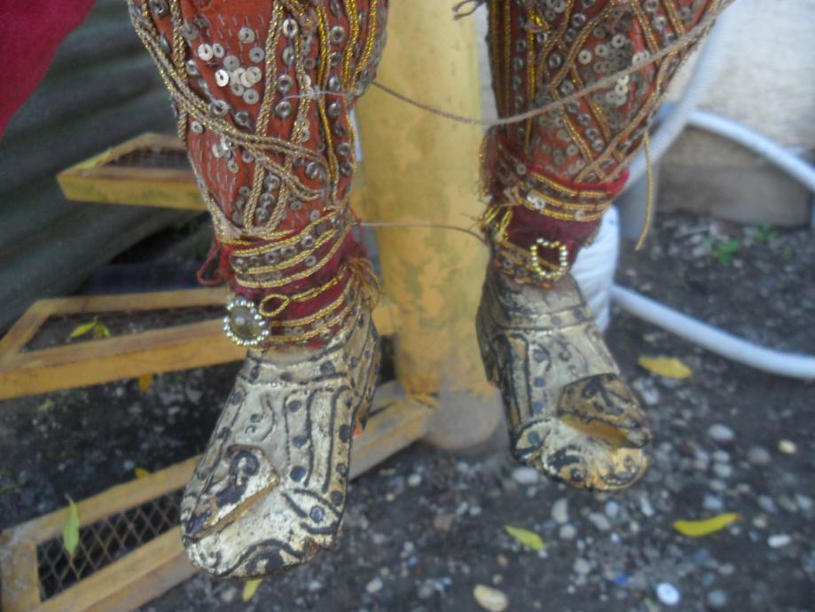 prekrasna i jako dekorativna..lutka,puna svakojakih šljokica,nekih rubina i safira ili išto li je već,,ko zna da radi sa konopima onda je lutka u pokretu,ali tu treba znanja i umiječa,konopi su malo isprepleteni no to malo strpljenja i sve se uredi,,,,,,dimenzije su 95 x 35cm(v x š),pogledajte moje ostale oglase starina i antikviteta.......................................navedena cijena nije fixna