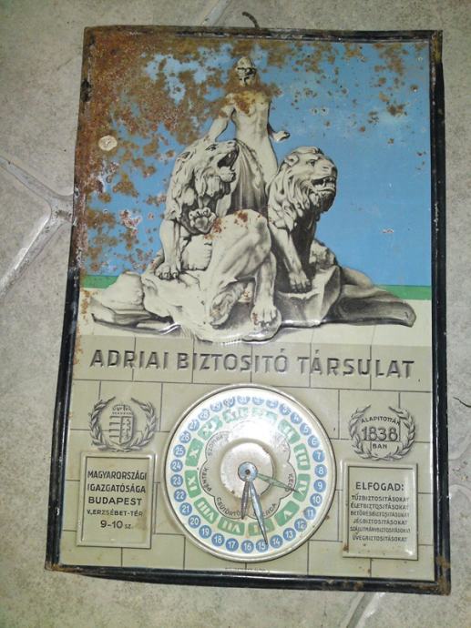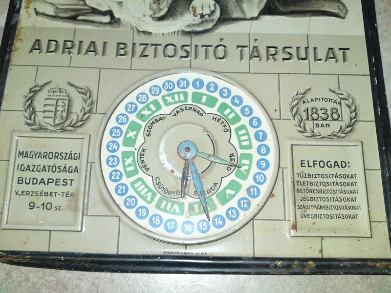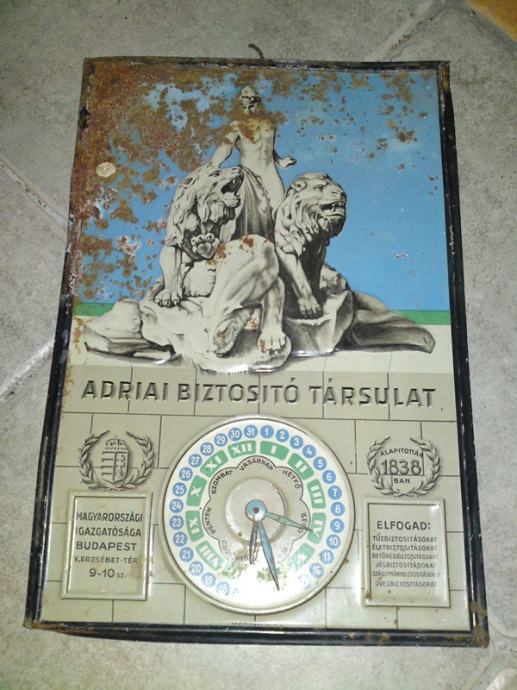 Jako stara metalna mađarska reklama sa kalendarom u obliku sata sa početka 20 stoljeća.