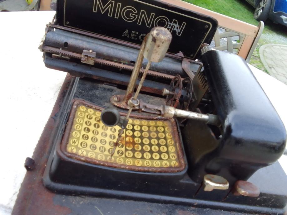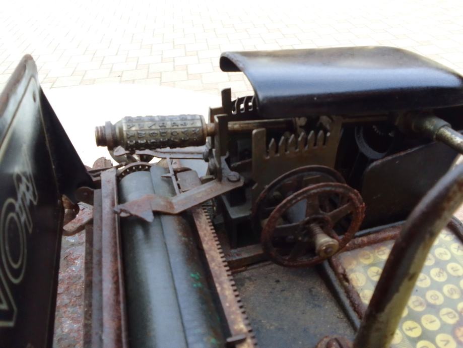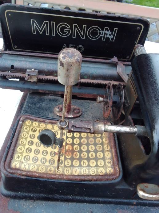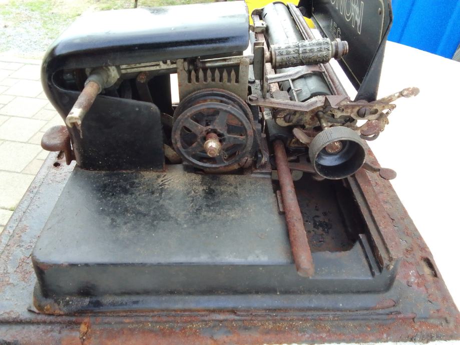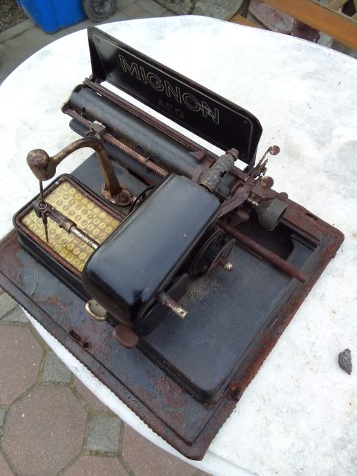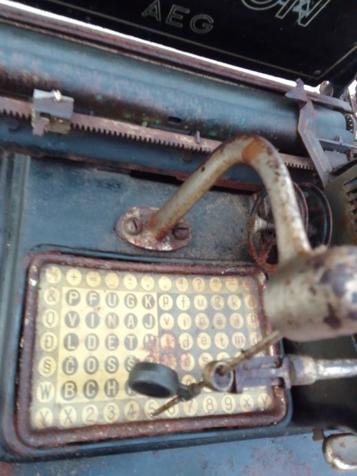 Jako stara pisača mašina,datira negdje od 1920 god iz Berlina kao proizvođača.kompletna,ispravnost upitna zbog stanja i starosti.no jako je dekorativna za kolekcionare..pogledajte moje ostale oglase starina i antikviteta..ponudite zamjene i vaše oglase starina ako imate