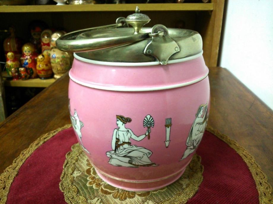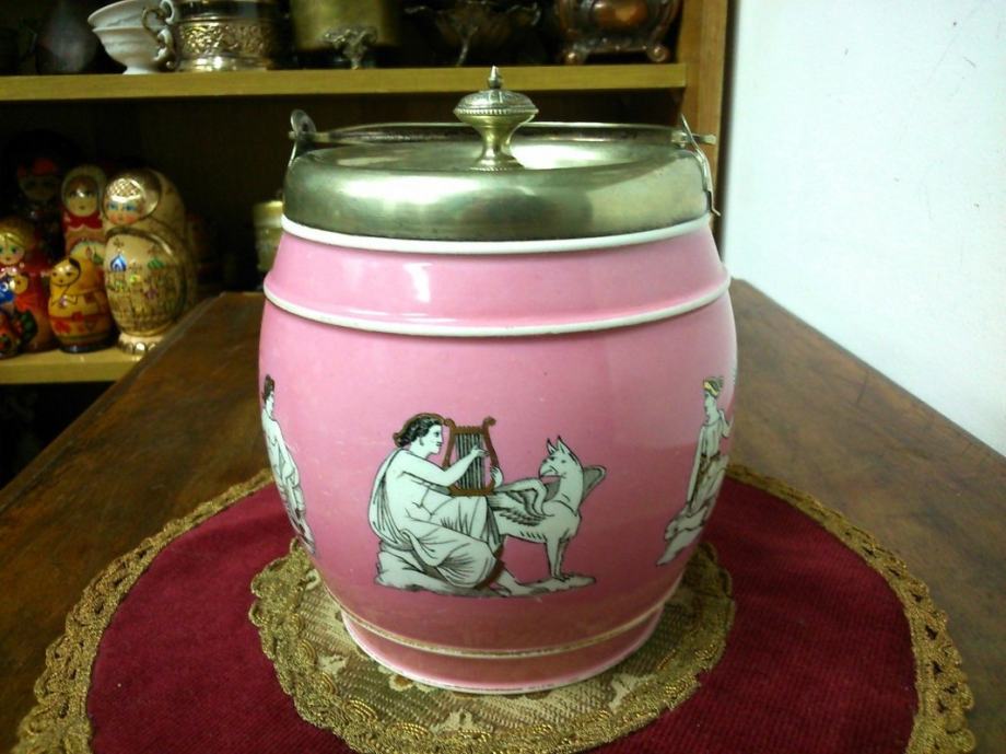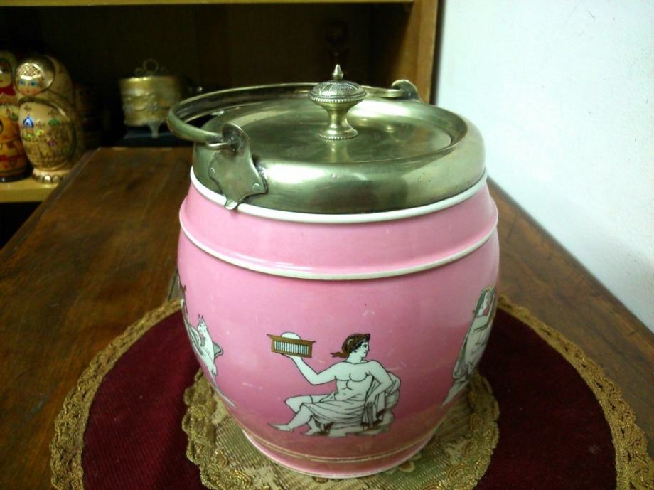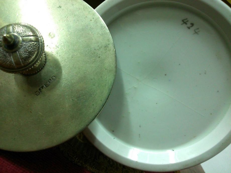 Stara porculanska neobična posuda (za led ili sl.) sa posrebrenim poklopcem i drškom, sa žigovima - ART DECO.