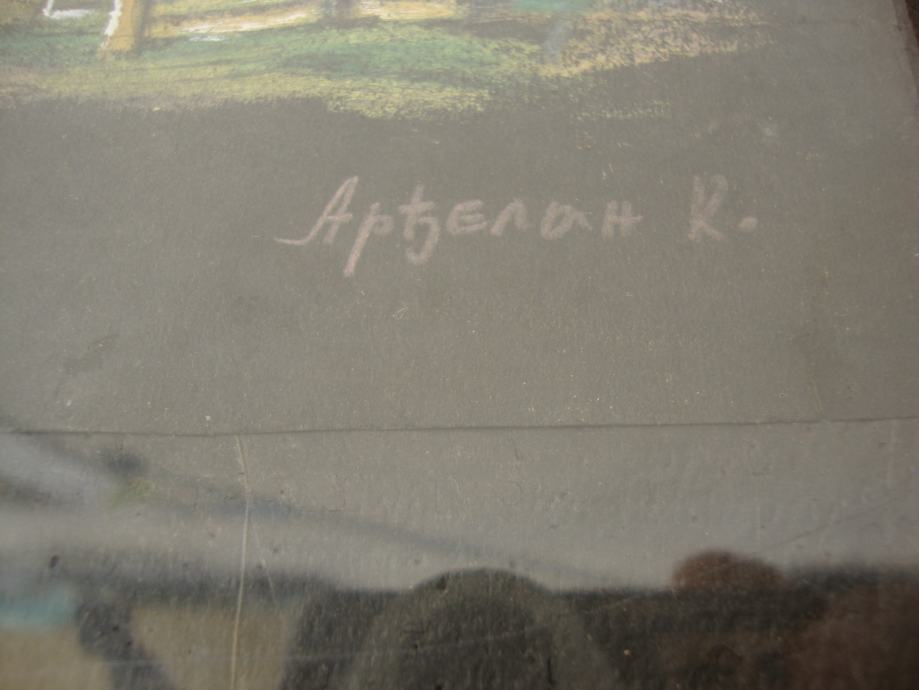 Dimenzije : sa okvirom 26 cm x 32 cm bez okvira sama slika 17 cm x 22, 5cm (unutar okvira stakleni dio)