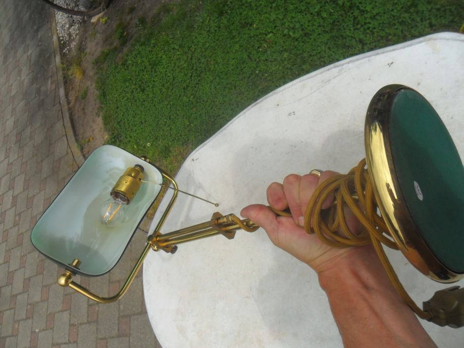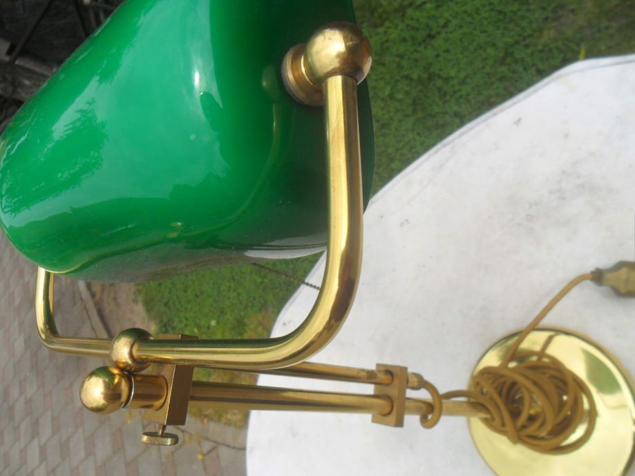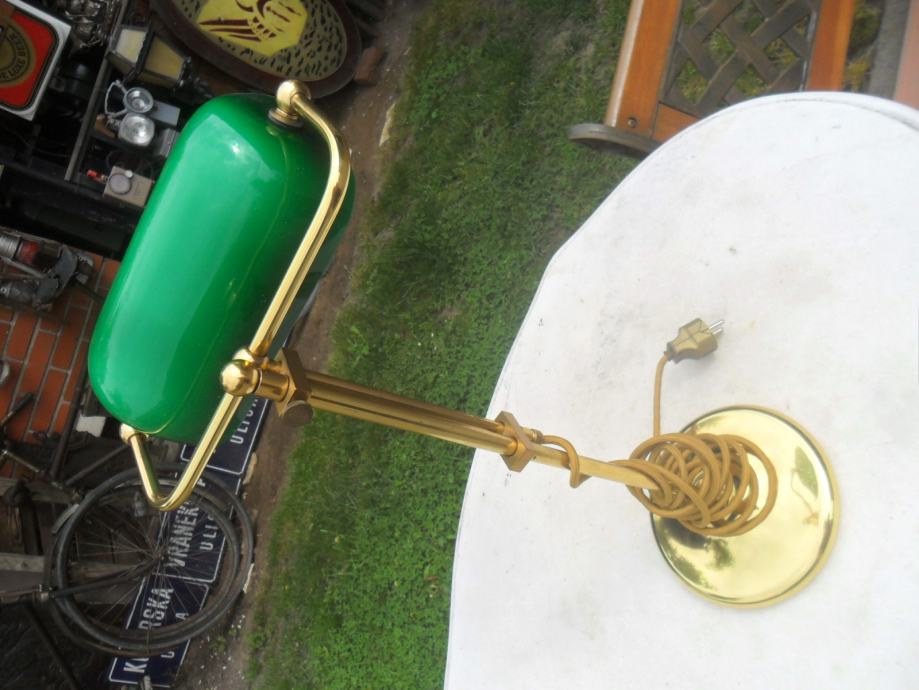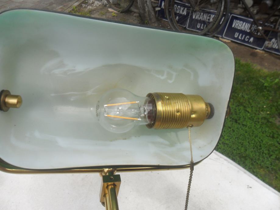 prekrasna mesingana lampa,visina 50cm,širina zelenog sjenila je 25cm,promjer dna je 17cm---pogledajte moje ostale oglase starina i antikviteta