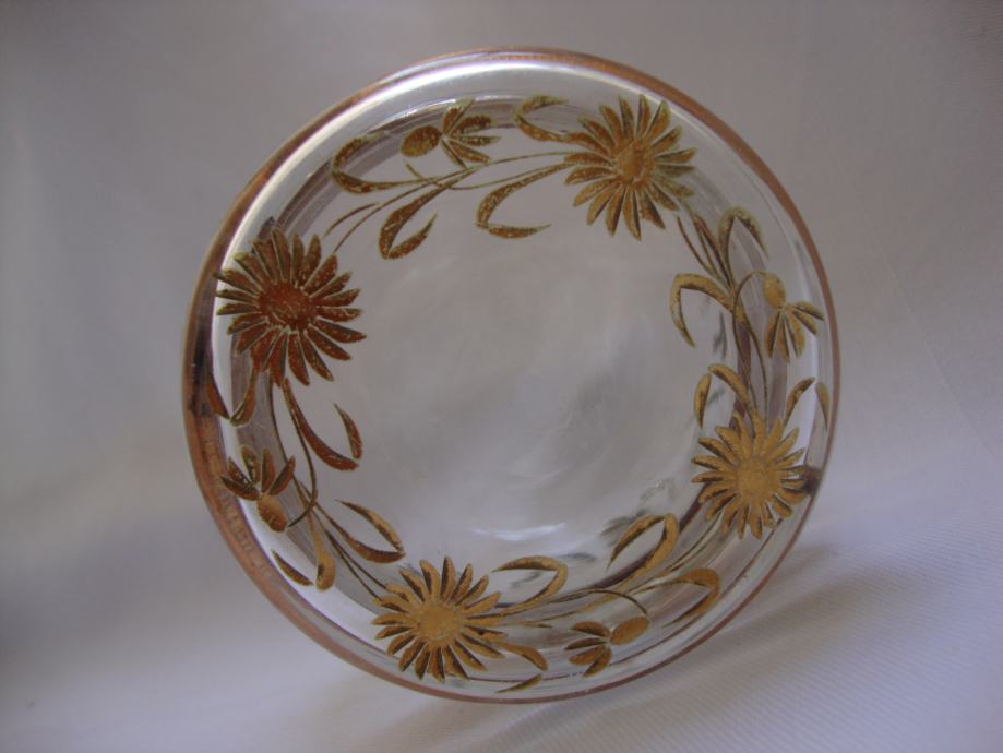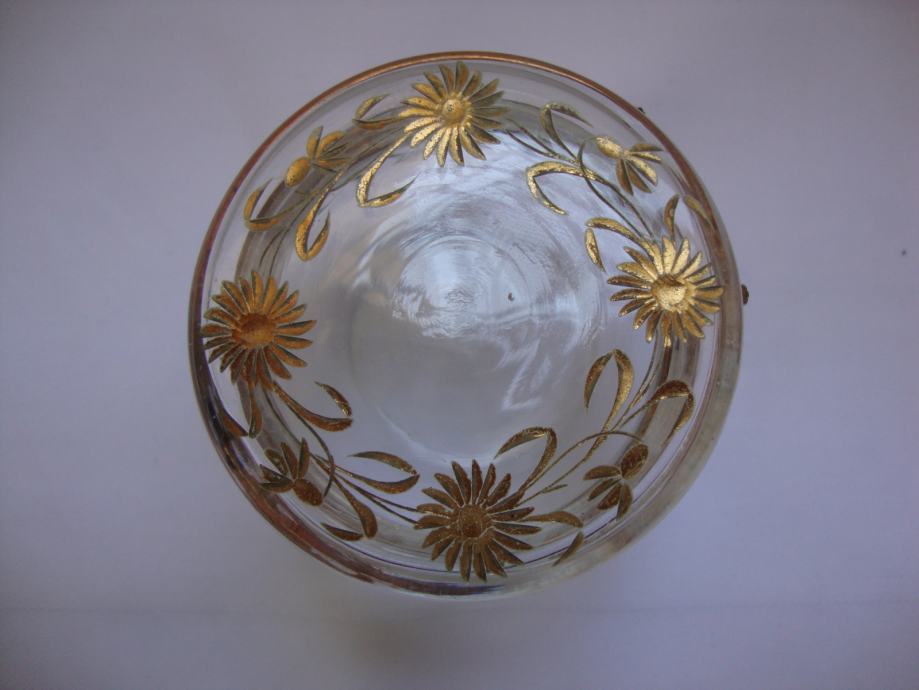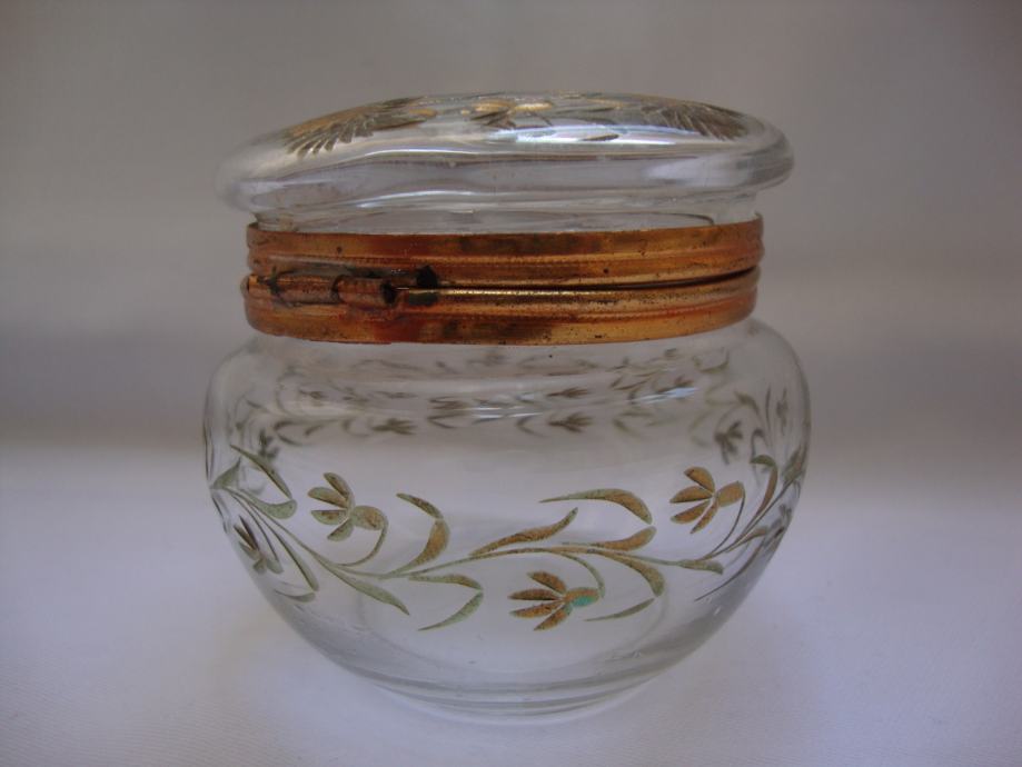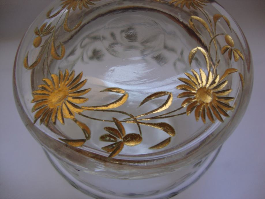 Dresser box cut glass hand painted gold - Staklena kutija kozmetička