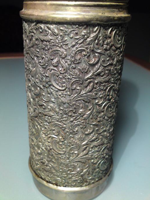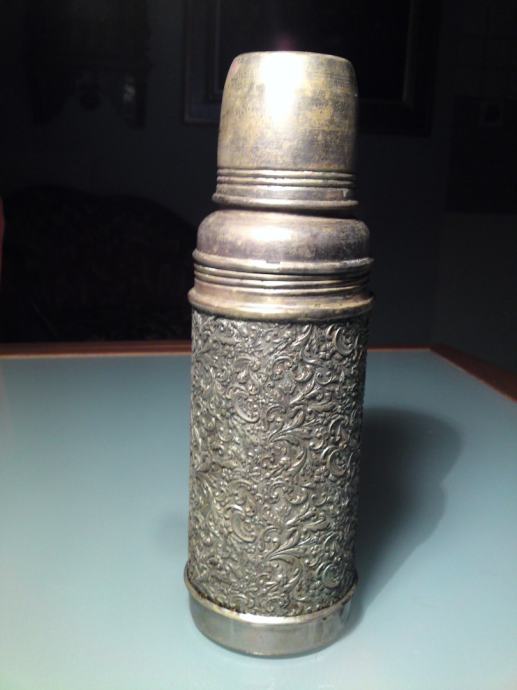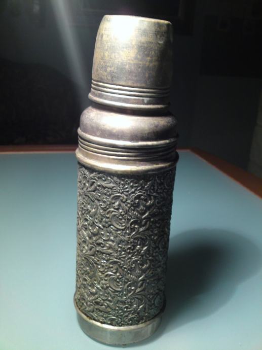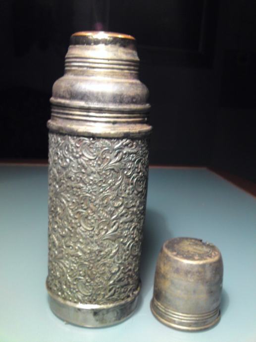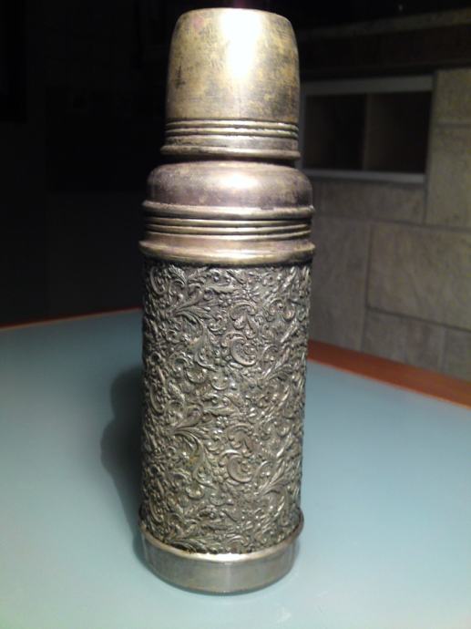 Stara termos boca , art deco, posrebreni kositar, original Thermid, trade mark; visina: 25,0 cm; promjer stope: 8,0 cm.