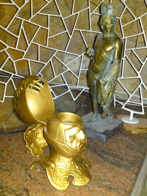 Dimenzije: Visina: 16,0 cm, širina: 14,5 cm. Materijal: neka legura metala.