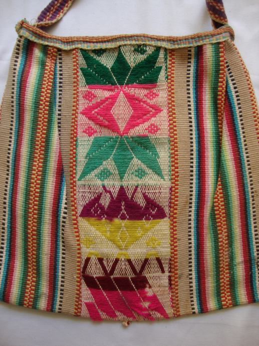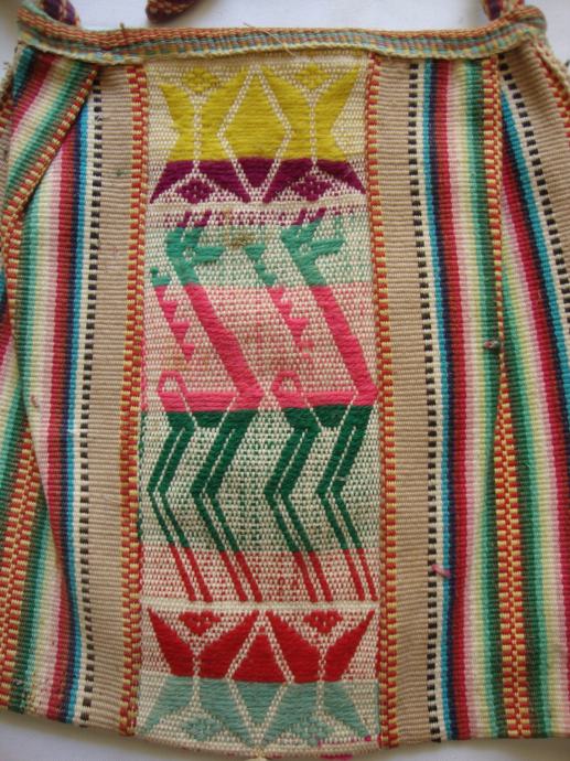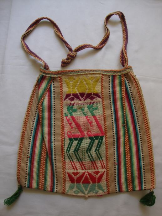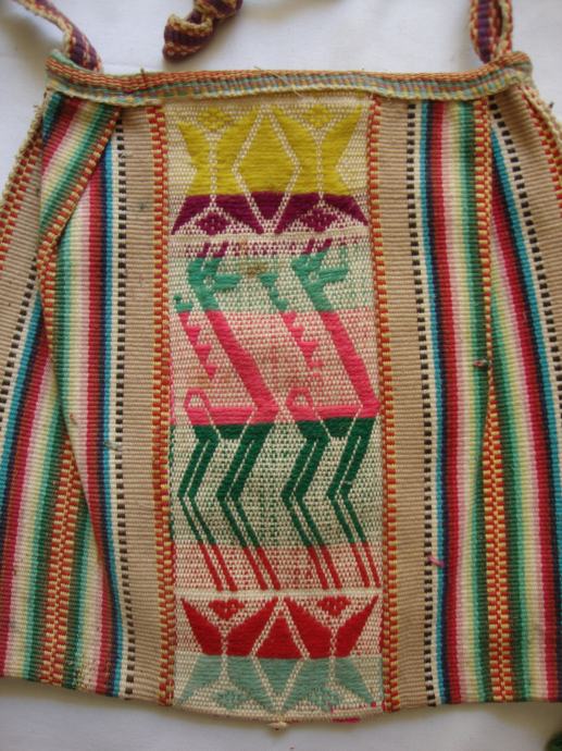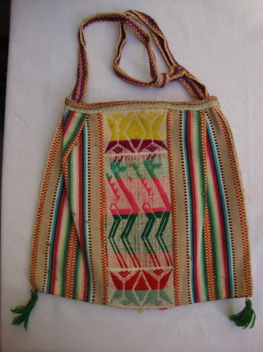 Jako stara borša ,Izvrsno ručno izrađena torba - borša višebojna sa dezenom dvije Ljame , srndaći