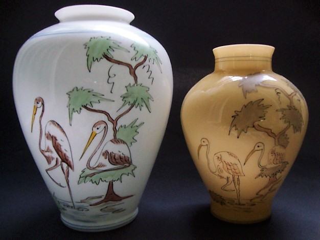 Stara vaza sa motivom Roda - Ručno oslikano - staro mljećno staklo
