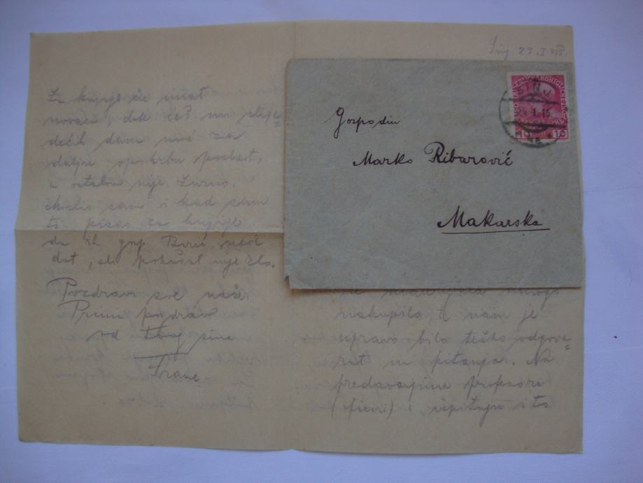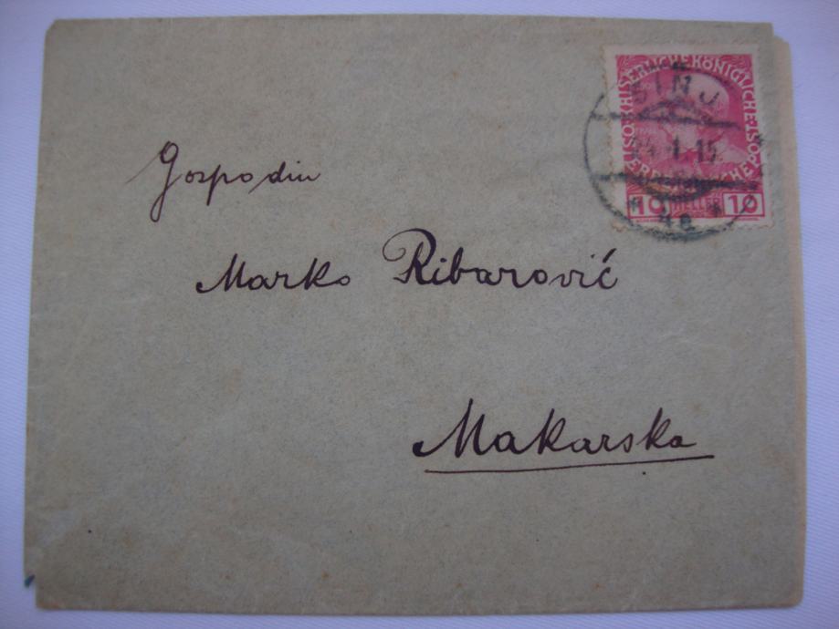 Starao pismo putovala Sinj- Makarska 1915. godine sve u odlićnom stanju pismo i kuverta žig i markica