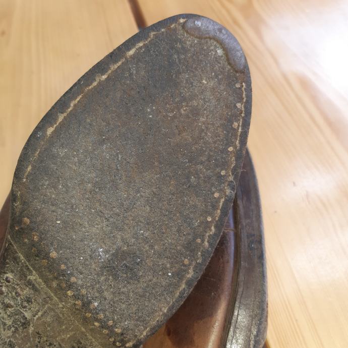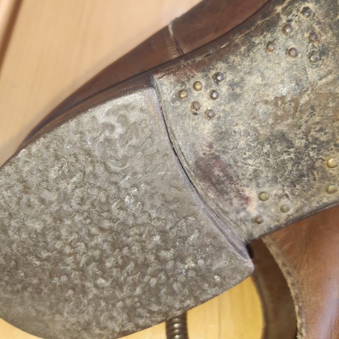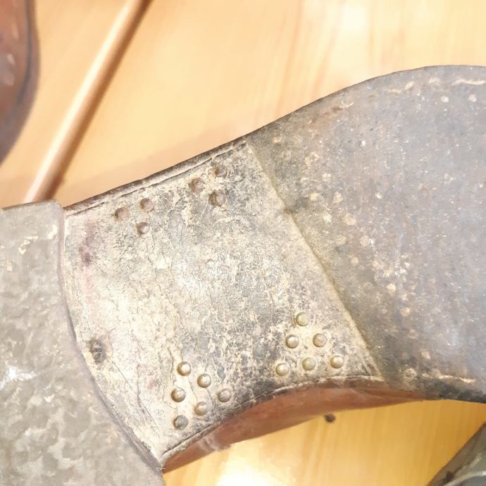Cipele nasljeđe mog djeda postolara(1914-2015) napravljene prema njegovim rječima 1944 i sačuvana kao primjer izrade za mlađe generacije..kad pogledate slike sve ce biti jasno.potplat od kože metalni i drveni čavliči rukom šivan đon i metalni štitnici.samo ona dva federa(napinjači nešto mlađi)..0958241802.