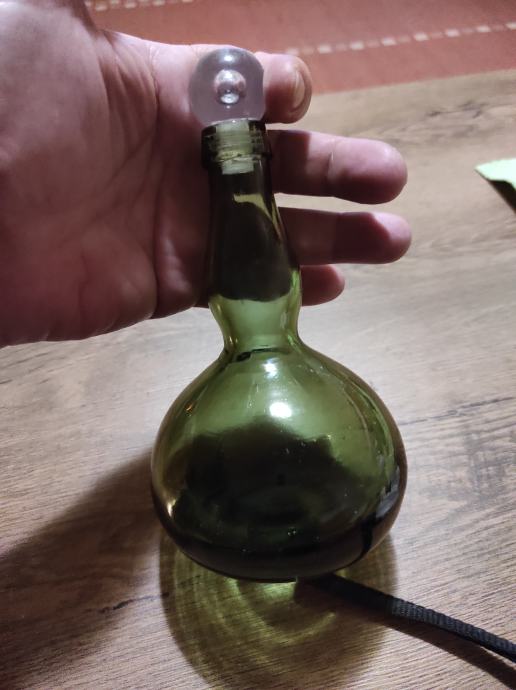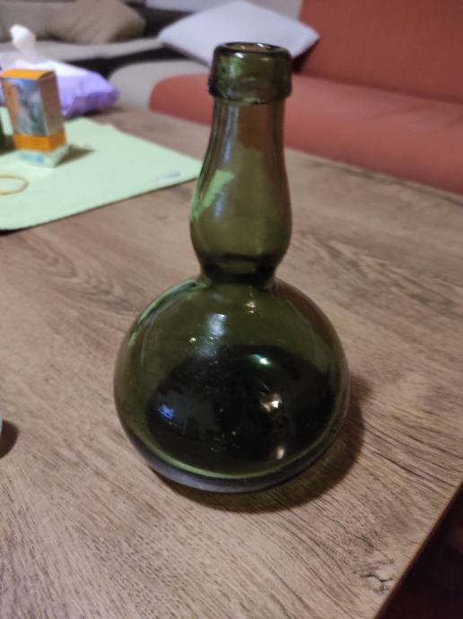 Stara staklena boca od 0,5 litre vjerojatno iz 19 stoljeća,a možda i iz 18 ,jako rijedak primjerak,a ocuvan je odlično .Malo sam istražio i ovo je vjerojatno boca od jednog Francuskog vina ,marka u slikama,slicne se prodaju po 150-200 ili više eura.Boca ima vidljive mjehuriće i to naj više u dnu i u čepu sto je vidljivo na slikama.Za sve informacije nazovite na broj 097-6601365 ili pošaljite upit na Viber ili Njuskalo, a Šaljem Poštom ili Tiskom ili u dogovoru sa kupcem,visina je 20 cm sa čepom,a Široka je otprilike 10 cm.VIDI SLIKE!!