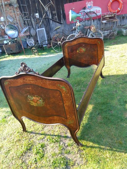 Krevet je star preko 150 god,jako dekorativan..ako je za ukras nije potrebna restauracija,ako je za upotrebu onda treba restauracija,sve je vidljivo na slikama,zato nazovite,usput pogledajte moje ostale oglase starina i antikviteta gdje ima još jedan metalni krevet