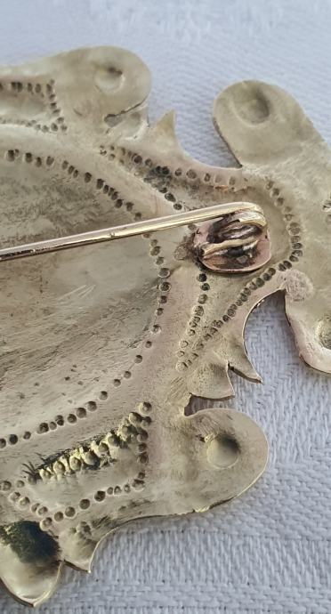 Stari Dubrovački plemićki zlatni broš 19.stoljeće 14 kartano zlato