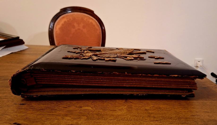Kvalitetni stari foto album, prednji reljef izrađen od kosti.