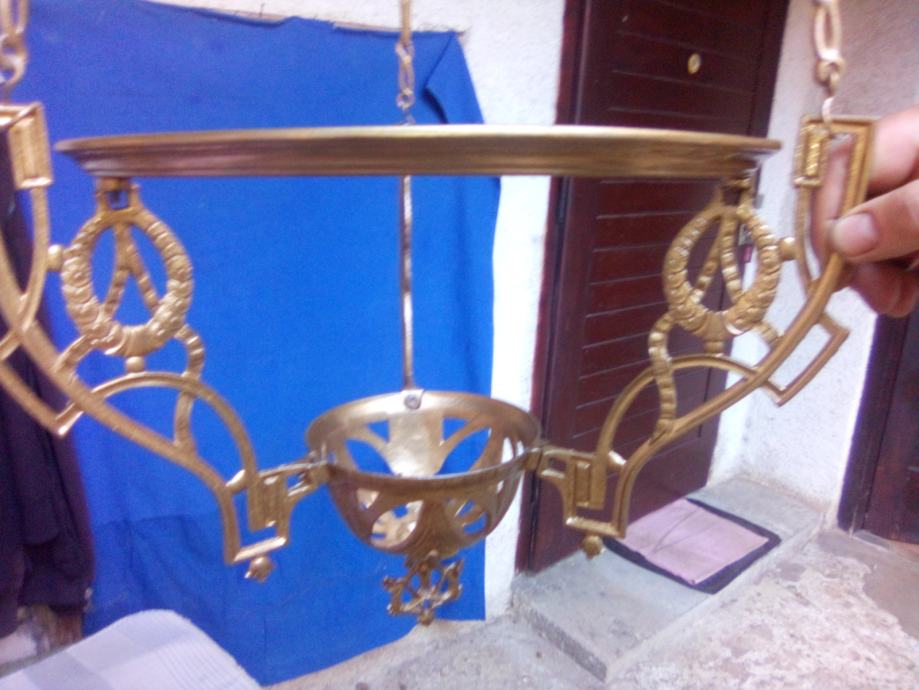 Djelovi su bili rastavljeni očišćeni i na novo lakirani , kugla sa lancima omogućuje dizanje i spuštanje lustera.