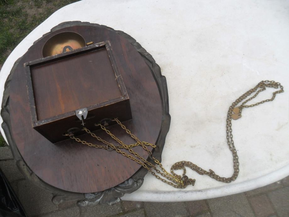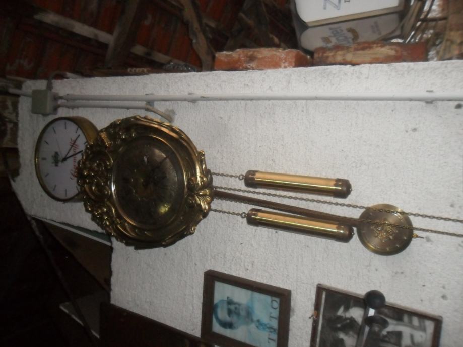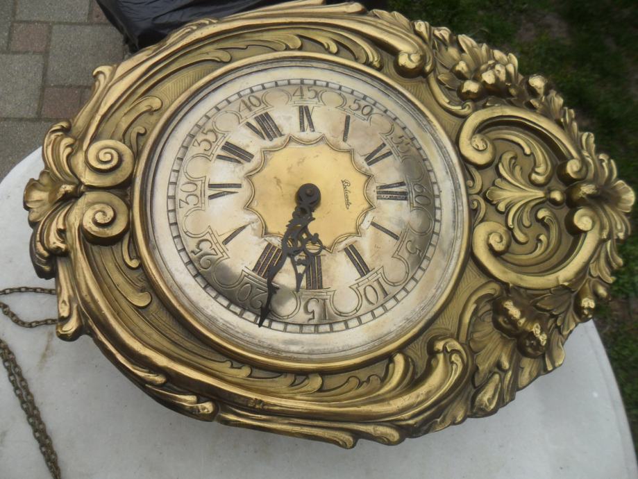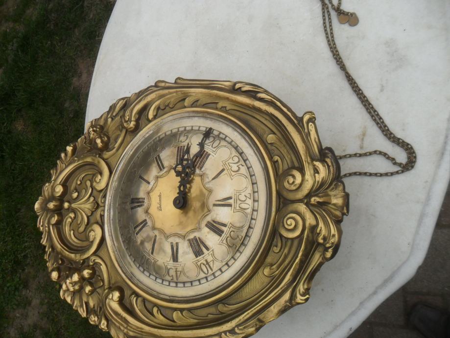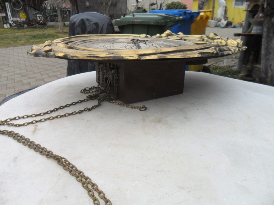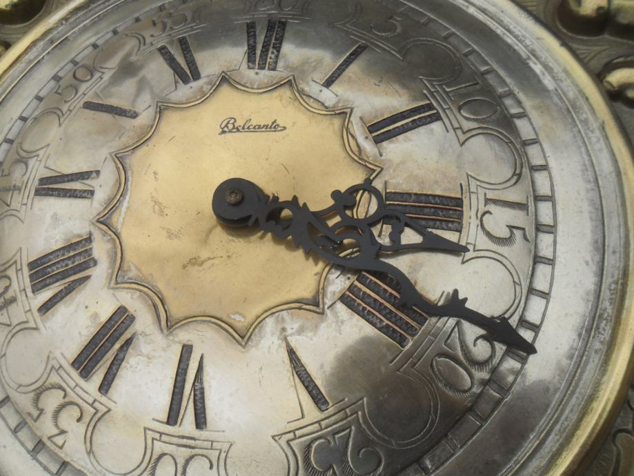 lijep i dekorativan stari mesingani sat,ispravan,zvoni svakih pola sata i puni sat,kučište sata je drveno..vanjski okvir od mesinga.max mjere su.visina 50cm,širina 38cm,dubina 12cm...pogledajte moje ostale oglase starina i antikviteta