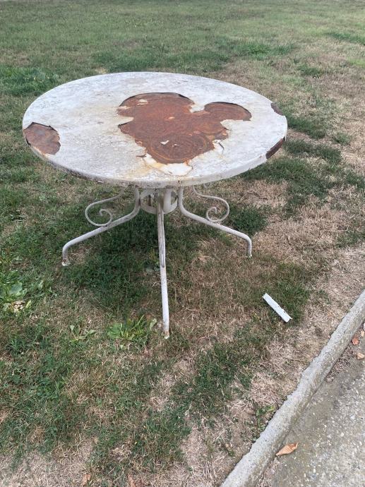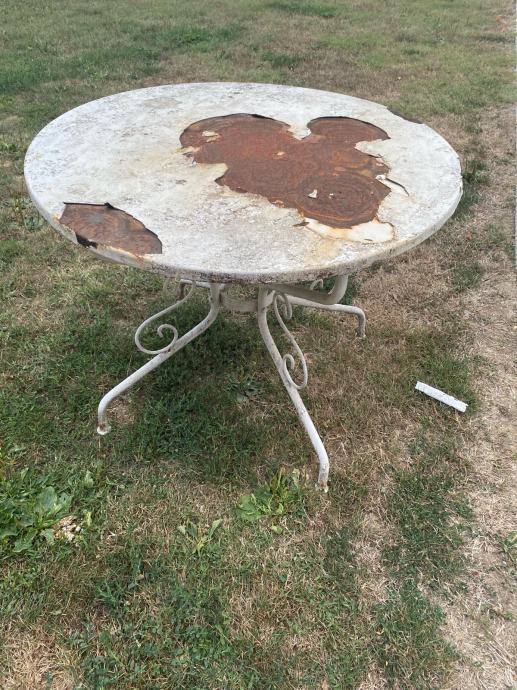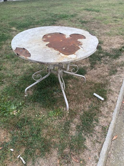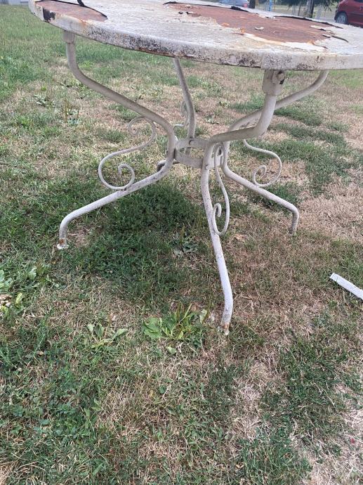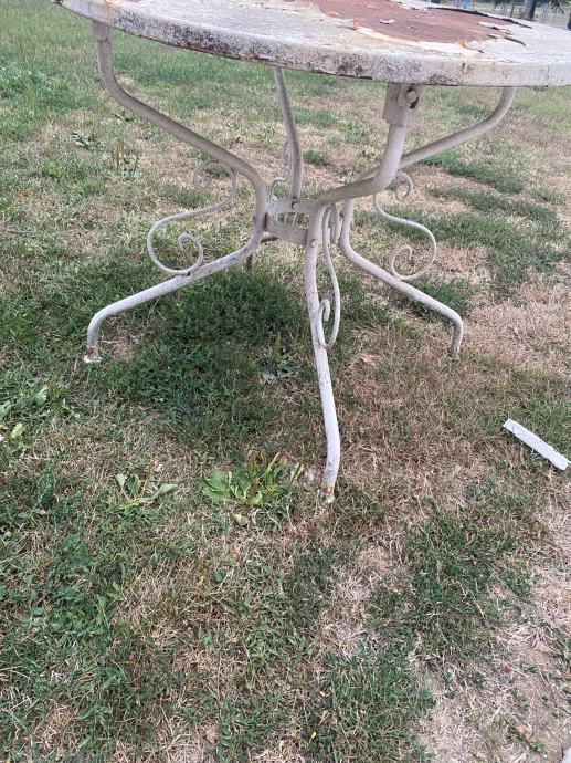 Stari metalni stol sa lijepo izradenim nogama.