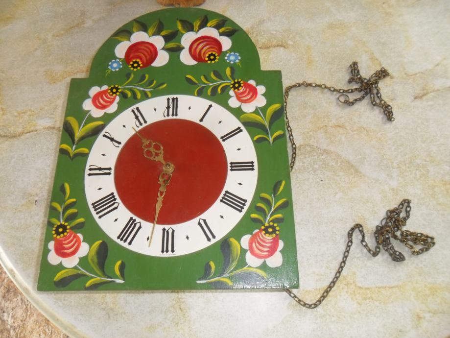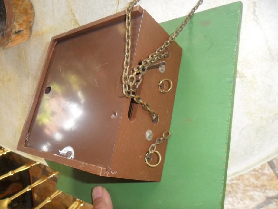 jako stari sat iz ratnih godina.nedostaju utezi,mehanizam nisam probao,proizvođać satnog mesinganog mehanizma je Jung Hans -. made in germany,dimenzije su 36 x 26 x 10cm(v x š x dubina),imamam još nekoliko starih satova vidljivih na poslijednim slikama...cijena nije fixna