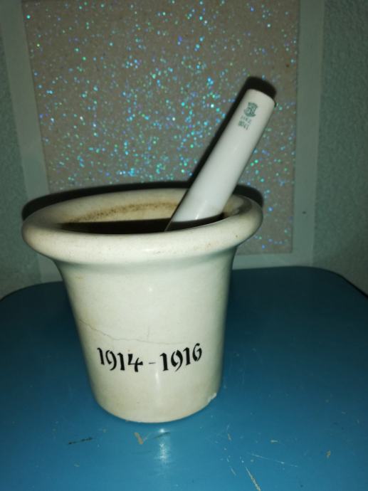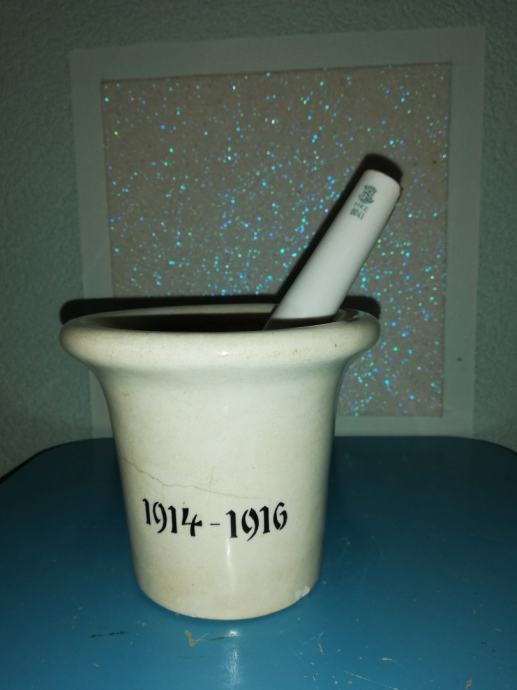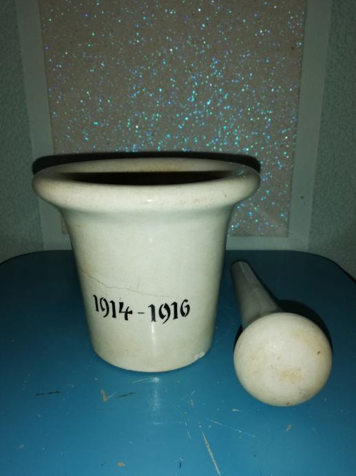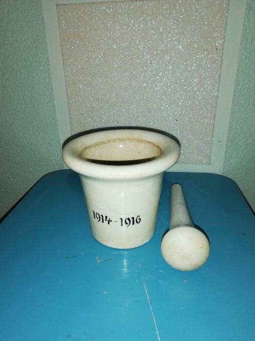 Stari porculanski apotekarski avan + porculanski tučak - žigirano, podrijetlo: Austro-ugarska, 1914.g., iz privatne kolekcije.