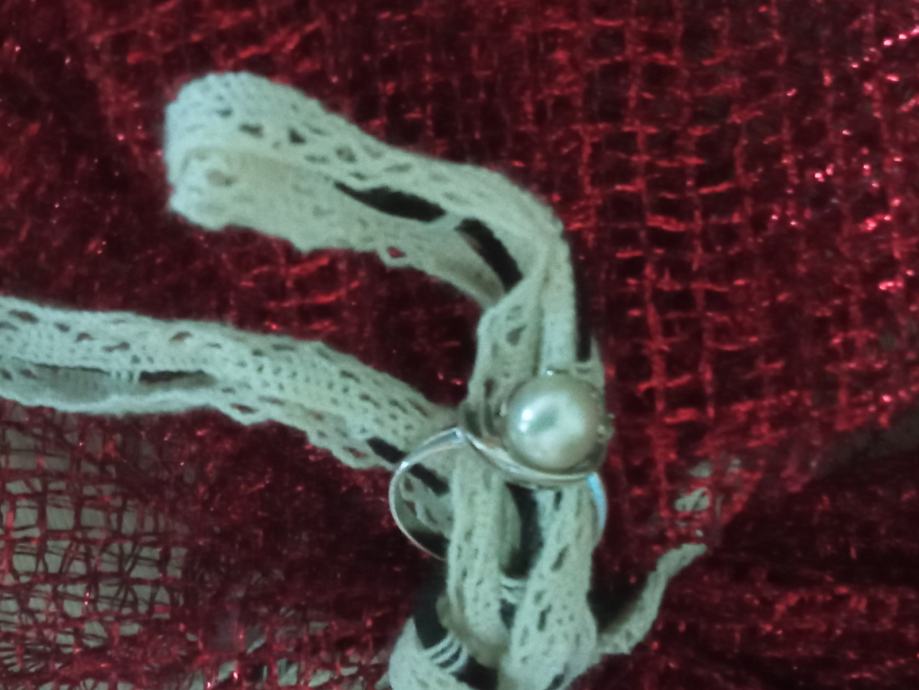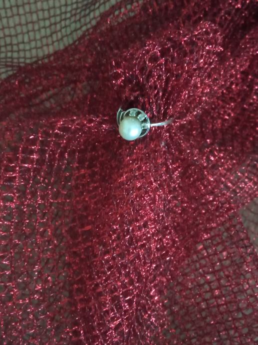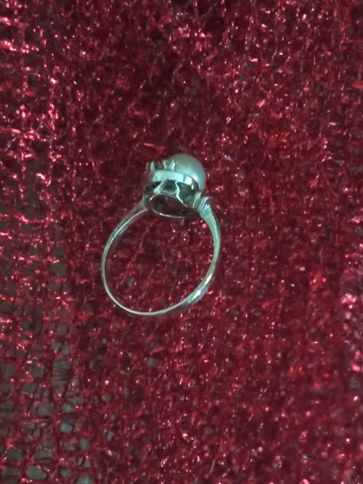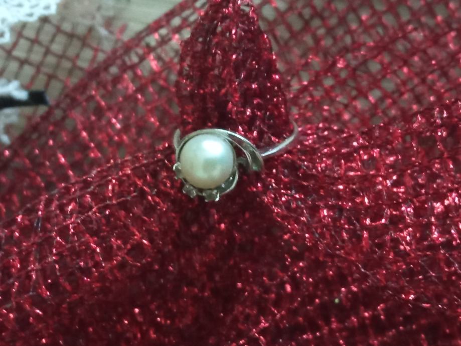 Prsten sa biserom i dijamantima. Od 18 karatnog zlata, težina 2,60 gr.
