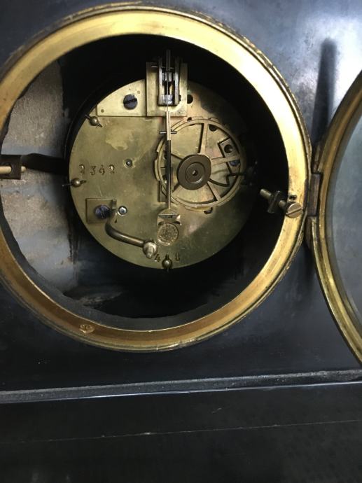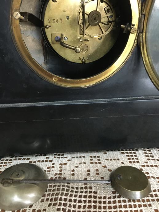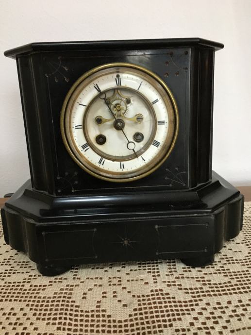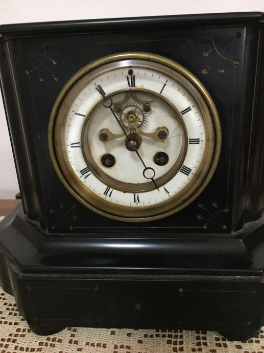 Stari sat,ispravan kompletan super stanje,zvoni na pola i na puni sat,mramor crni,vidljiva nemirnica,(BROKOTHEMUNG)visina22cm-širina26cm