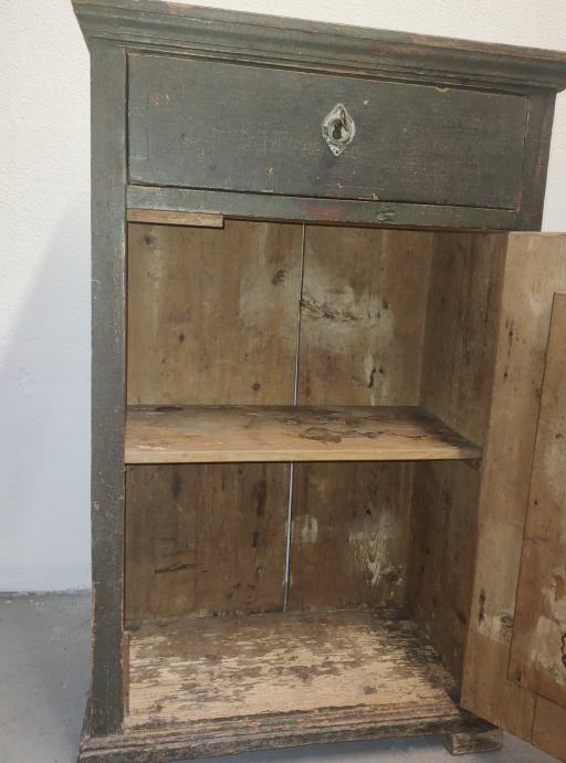 Stari šokački ormarić sa poč. 19. stoljeća, izuzetno dobro sačuvan.Drvo zdravo, uslijed habanja originalne uljane boje, sastao je prirodni shaby shick izgled. Ormarić treba eventualno lakirati da se sačuva ovaj efekt, ili urediti po zahtjevima kupca.Ormarič ima originalne bravice i ključ. Dimenzije: širina 56,0 cm, dubina 31,0 cm, visina 90,0 cm