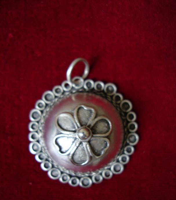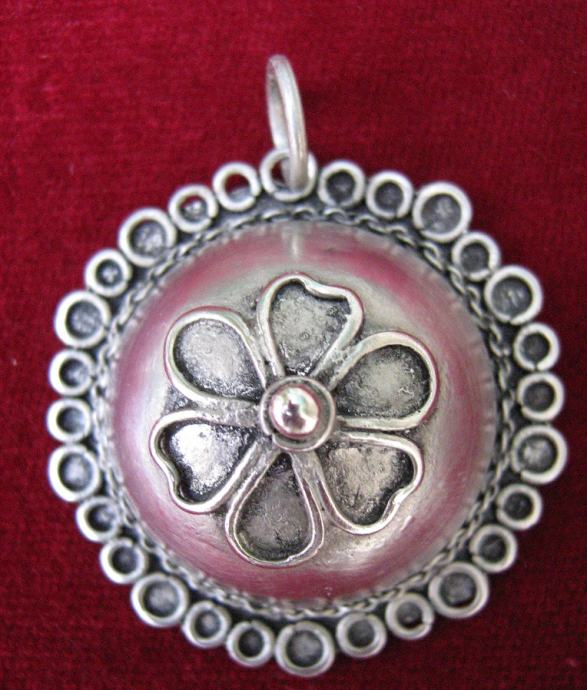 stari privjesak srebro -promijer 3,7cm odlično očuvano -ručni rad.polu kugla(toke )-autentično