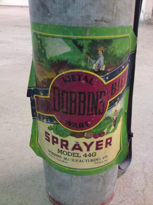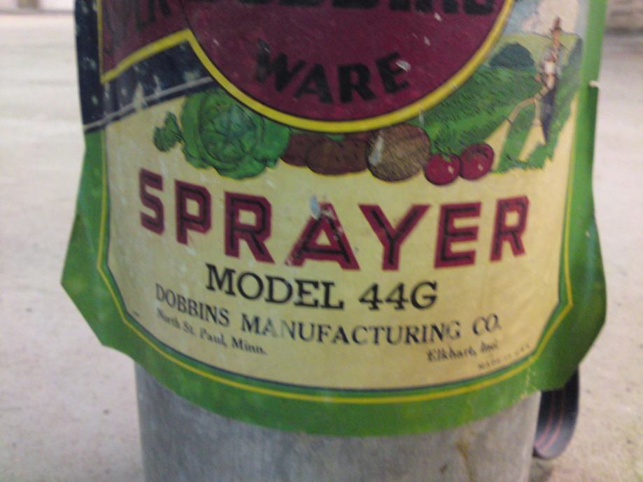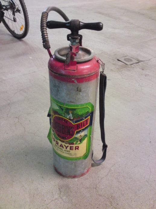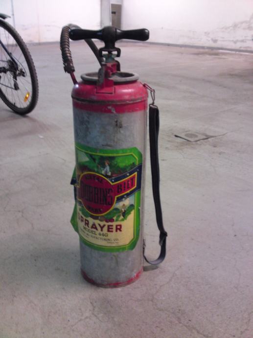 Stari vrtlarski raspršivač, podrijetlo SAD, proizvođać: Dobbins Manufacturing Co., St.Paul, Minesota. Model:44G. U odličnom stanju.