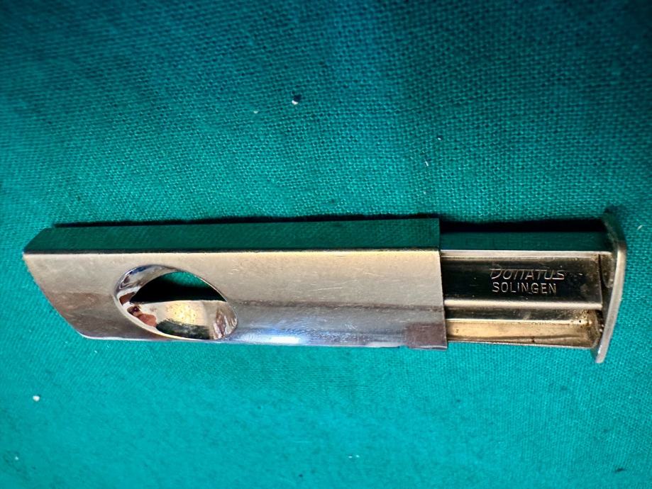 Prodajem vrhunski vintage rezač za cigare poznate njemačke marke Donatus Solingen. Riječ je o kolekcionarskom primjerku iz sredine 20. stoljeća, proizvedenom u gradu Solingenu, svjetskom središtu najbolje čelične oštrice.
