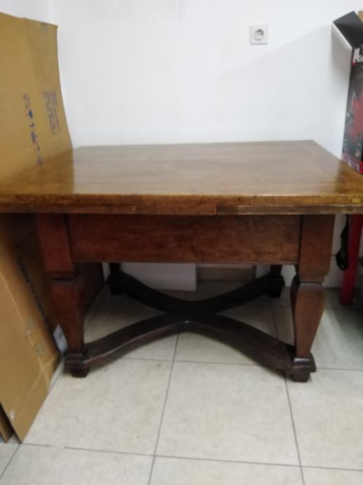 Stari seljački stol, potpuno uređen, dimenzije 120 x 95 cm, bez razvlačenja, 2 produžetka od 47 cm, razvučen stol dimenzije 215 x 95 cm