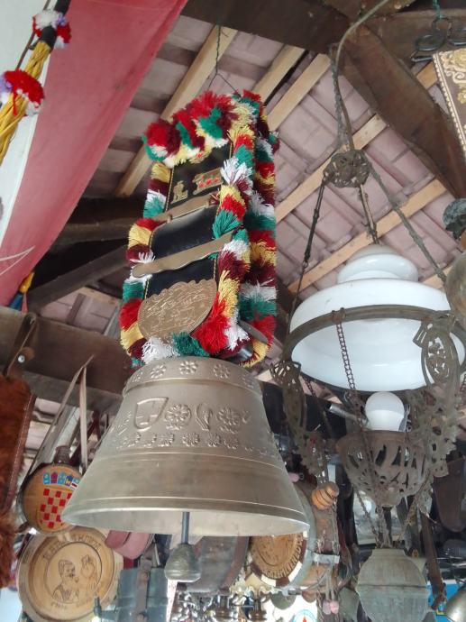 Pogledajte slike i nazovite..dimenzije samog zvona su širina 30cm,visina 25cm,debljina20cm,visina sa remenom je 65cm..pogledajte moje ostale oglase starina i antikviteta gdje ima još zvona raznih vrsta