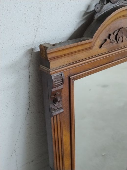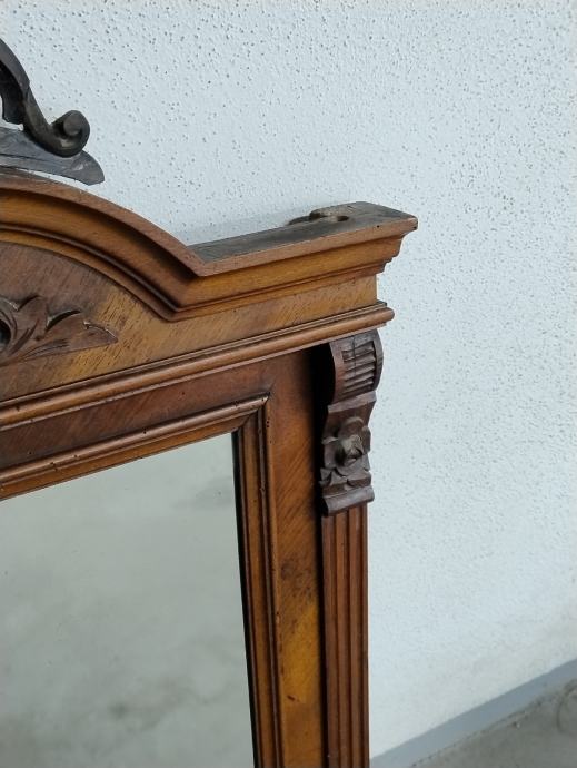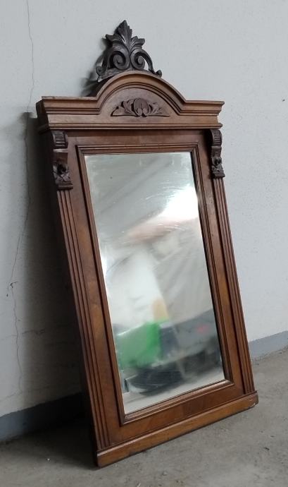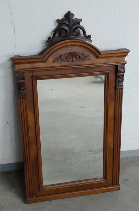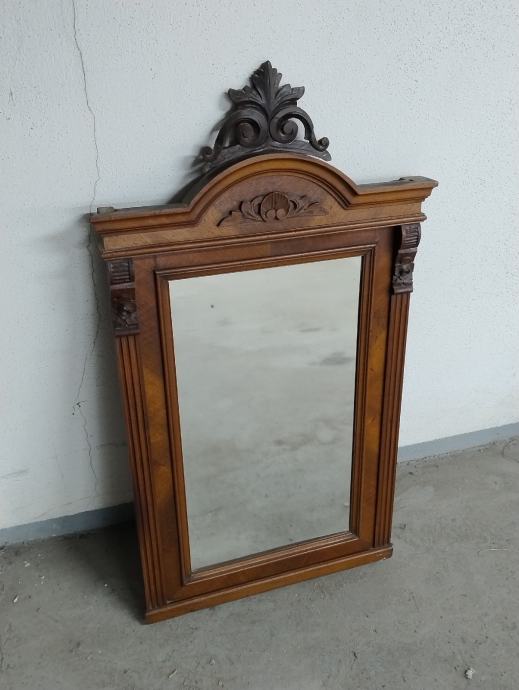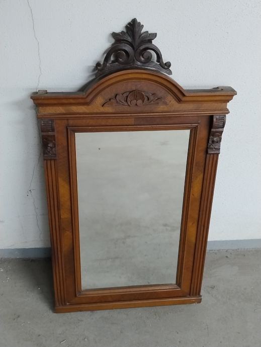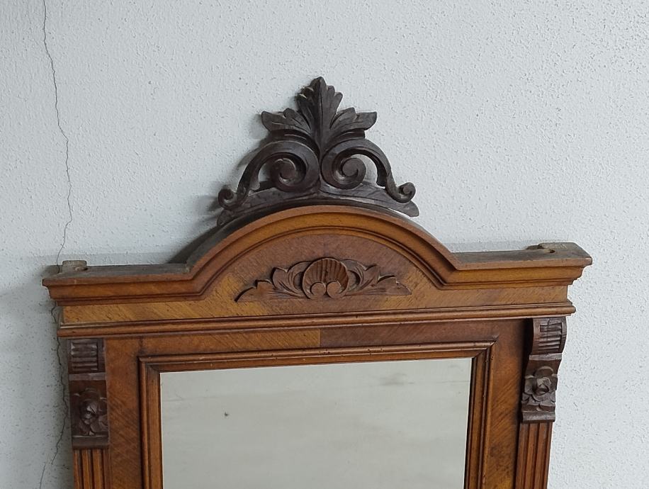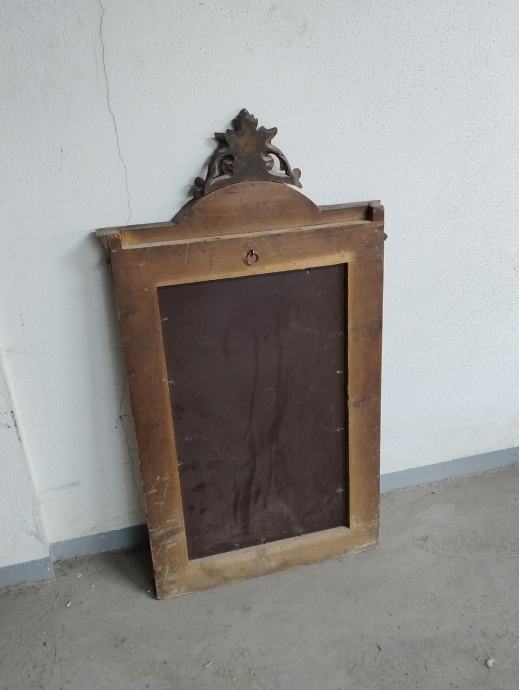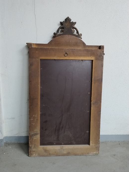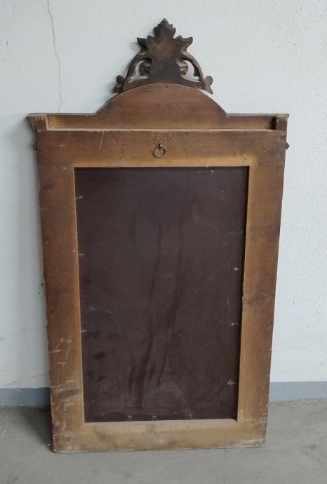 Dimenzije visina 101,5 cm, visina bez dekoracije 82,5 cm, širina 56,0 cm, dubina 6 cm., dim. zrcala 62 x 34 cm