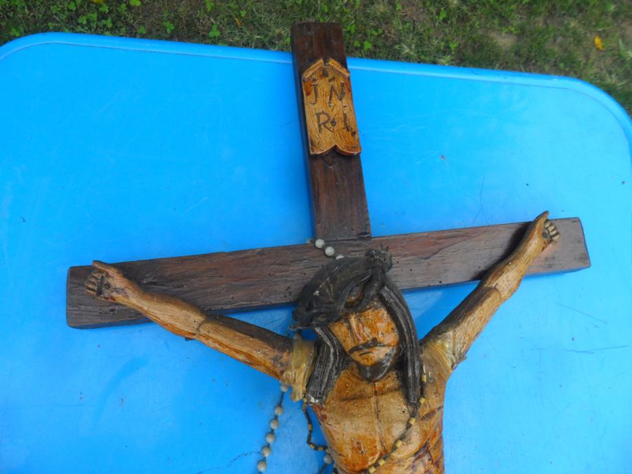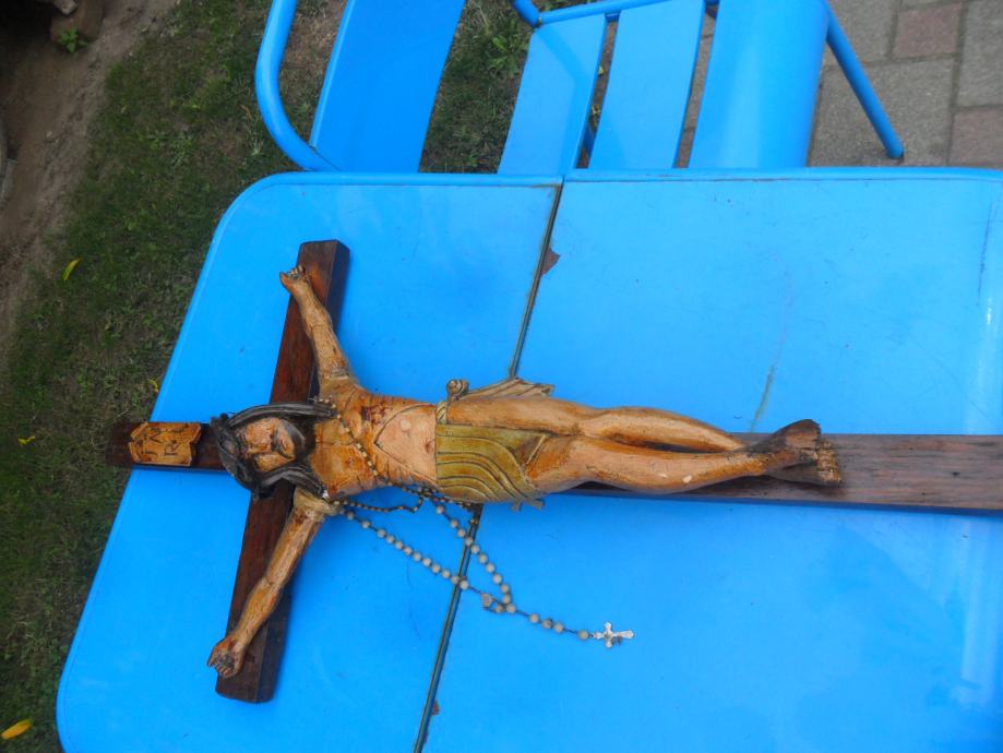 sve kompletno od drveta(i isus),ručni rad star preko 150 god,malo crvljiv ali ništa strašno da se nebi saniralo..dimenzije križa su 80 x 45cm,,,pogledajte moje ostale oglase gdje imate svakakovih antikviteta i drugih starina