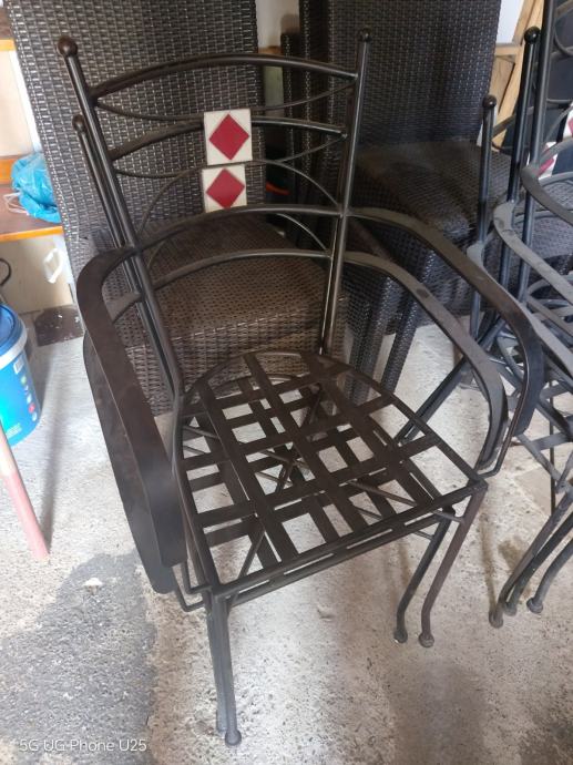 6 metalnih stolica s keramičkim detaljima na naslonu.