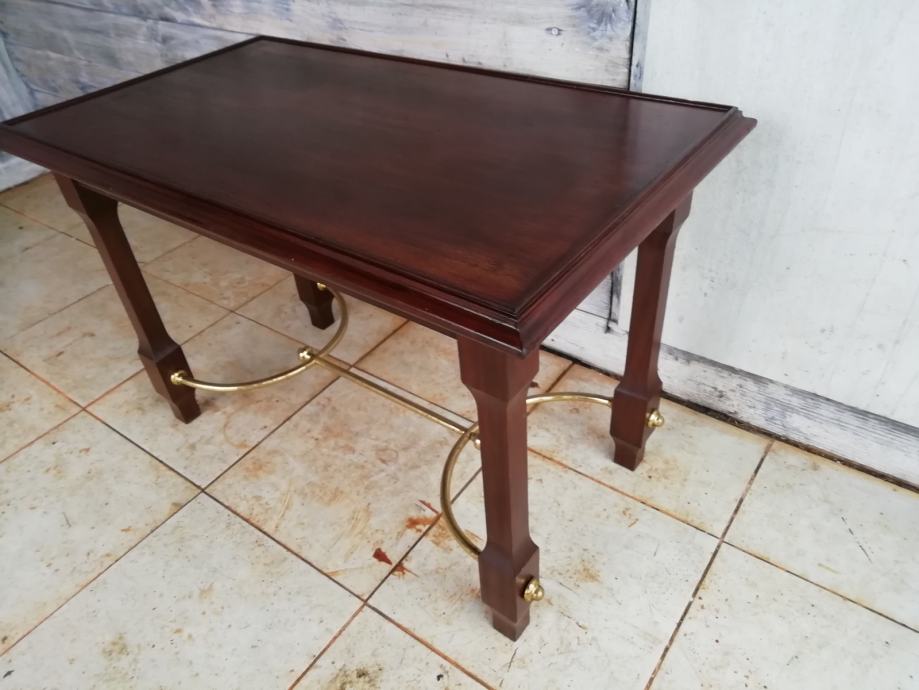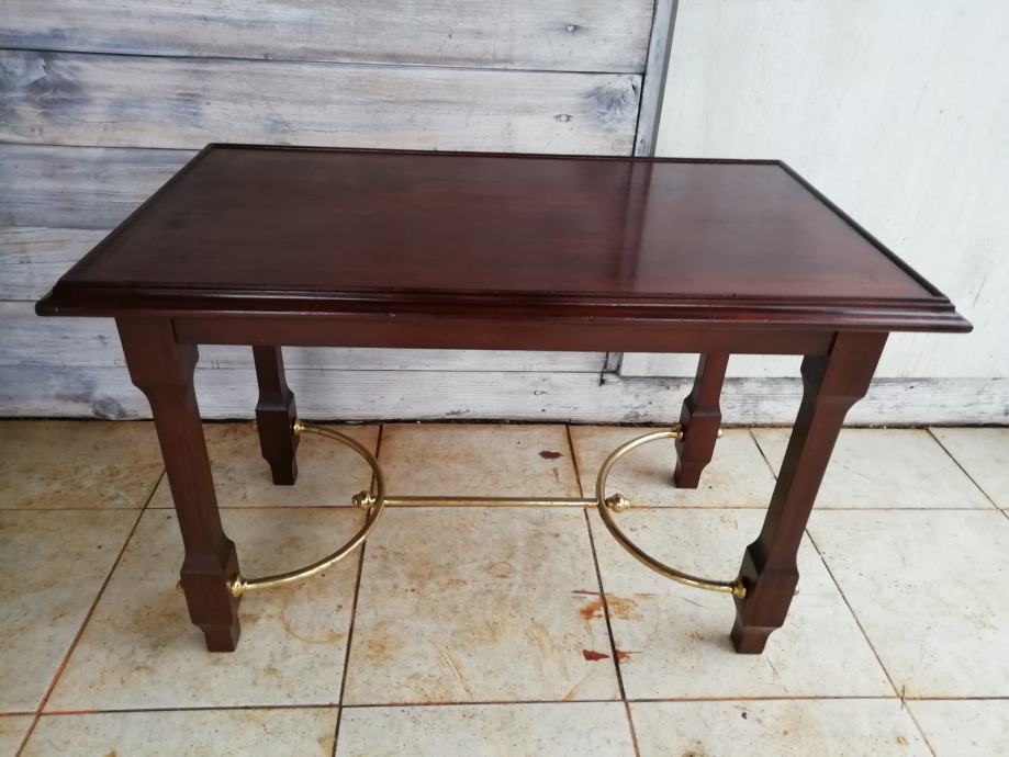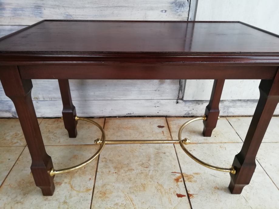 Starinski manji stolic za dnevni boravak sa mesingom. Duzina 72 cm, dubina 41 i visina 47 cm.