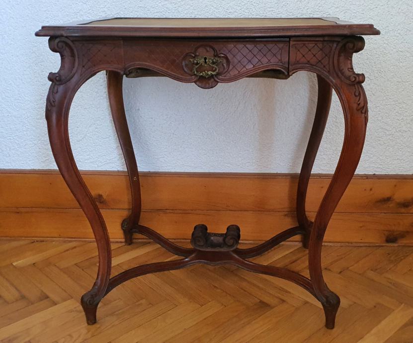 Jako lijepi antikni francuski stolić iz 18 stoljeća od oraha -stil Luji XV. Dimenzija 48x69x72 cm.