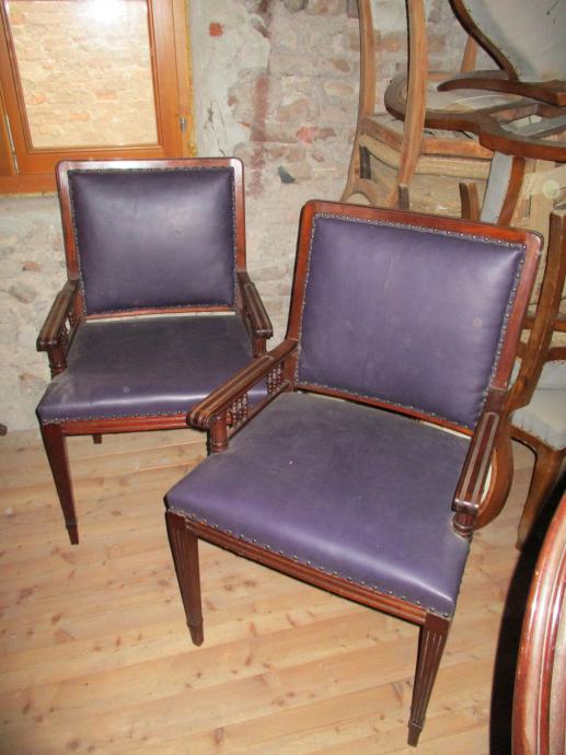 Prodajem 2 restavrirane stolice iz mahagonija, usnjeno tapiciranje.