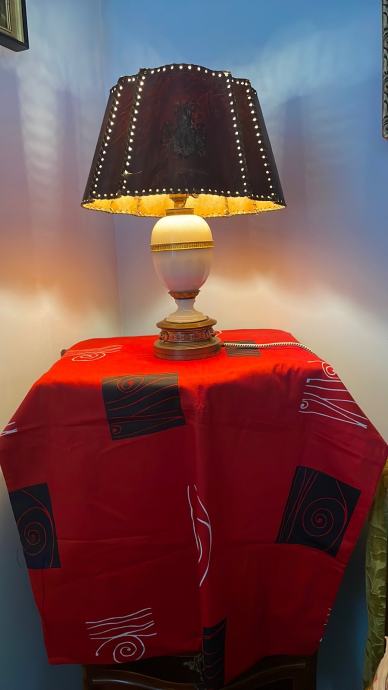 Prodajem staru antiknu stolnu lampu od mesinga i murano stakla, iz oko 1910 god. Potpuno sačuvana i ima svoj prekidač na grlu. Prekrasan sačuvani primjerak iz tog doba. Preuzimanje u Splitu ili bližoj okolici. Ne šaljem. Visina je 48 cm. Proizvedena u Čehoslovačkoj oko 1930 g. Pogledajte i ostale moje oglase, hvala.