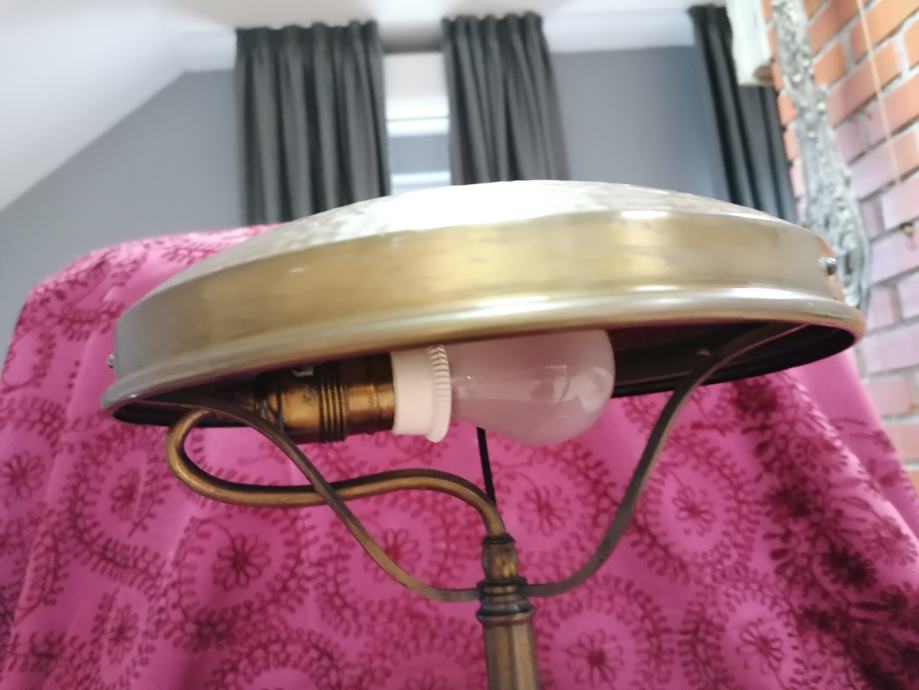 Predivna antik stolna svjetiljka. Original secesija. Mislim da je kučište od bronze. Visina 42 cm, promjer 26 cm. Dobijete predmet sa slika.