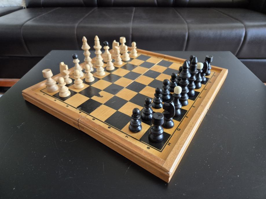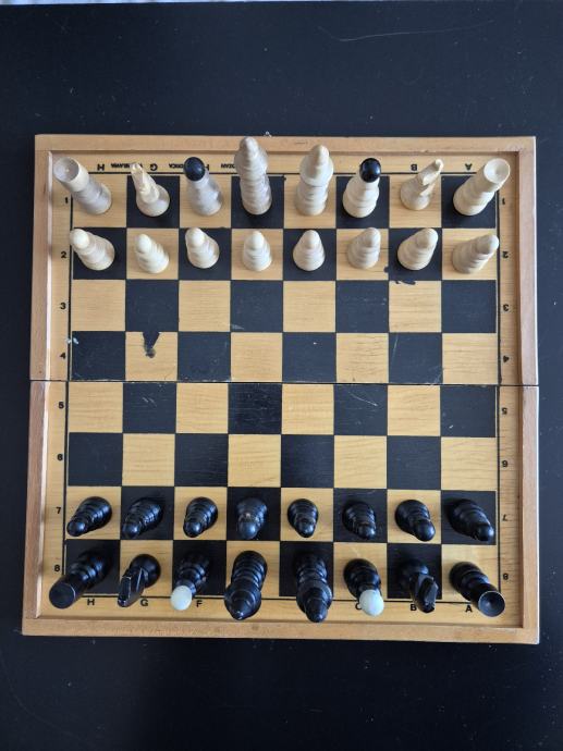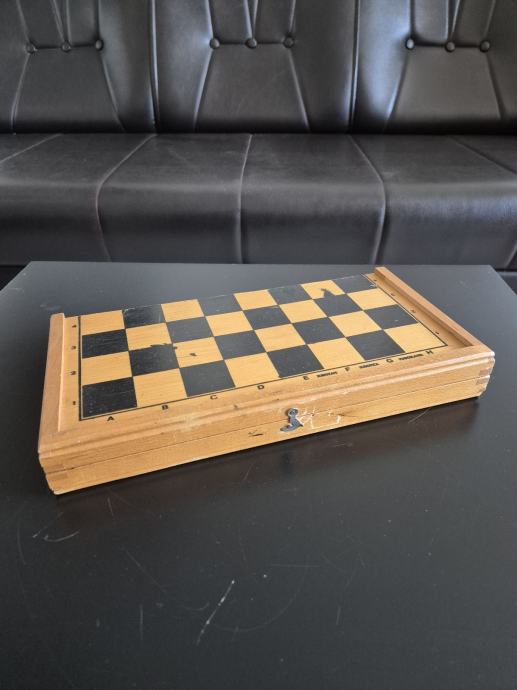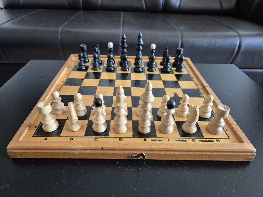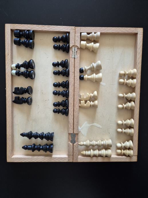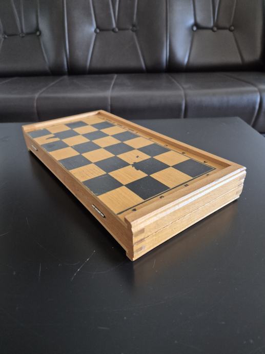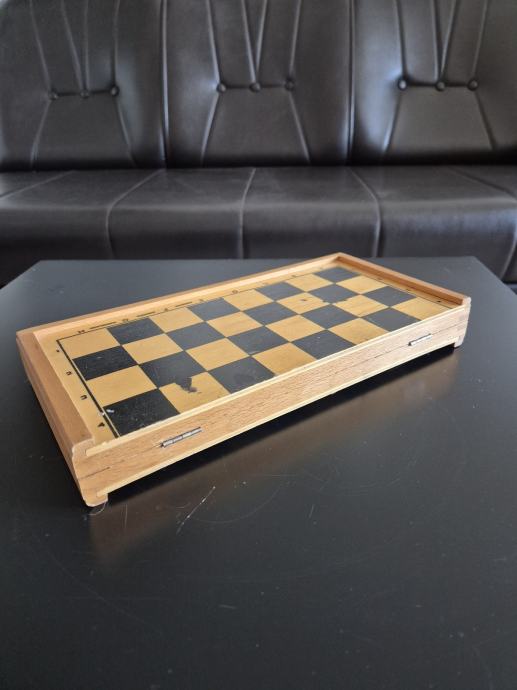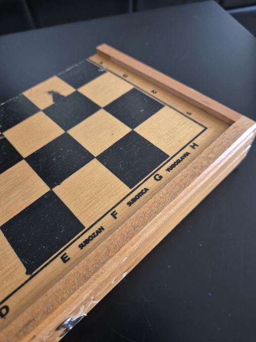 Drveni antiktni sah, Subozan Jugoslavija, drvene figure, dimenzije 30x30cm.