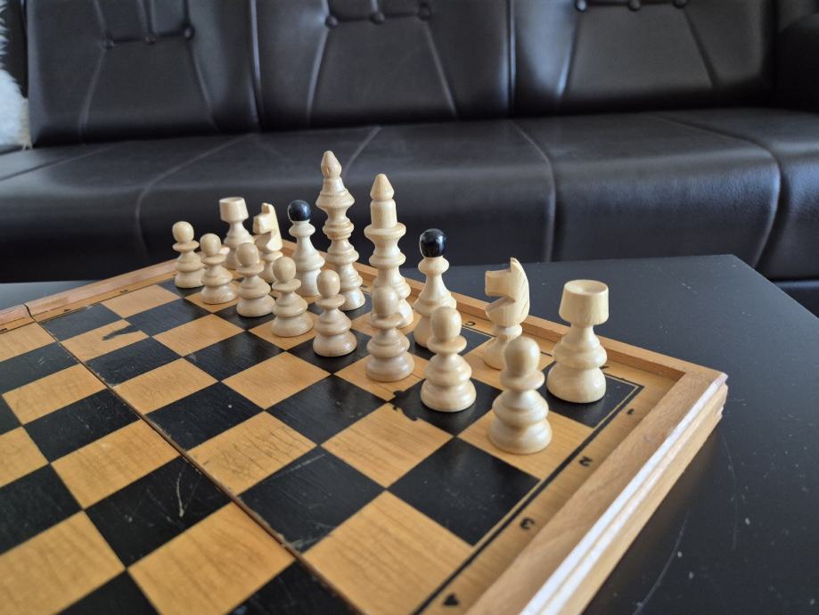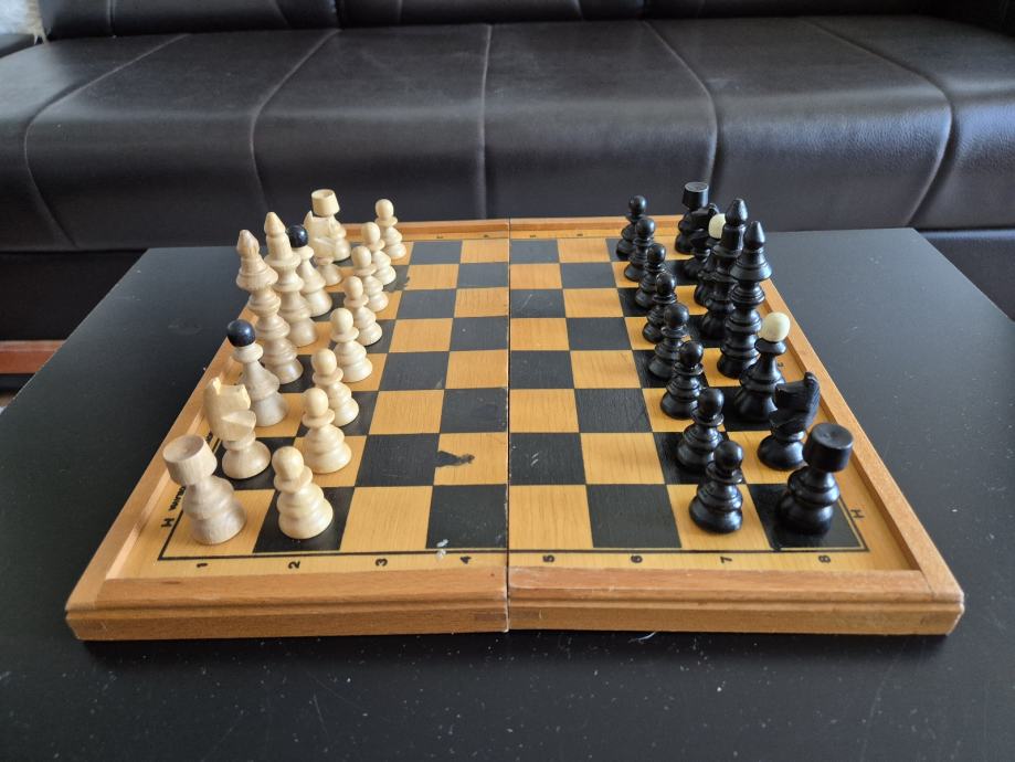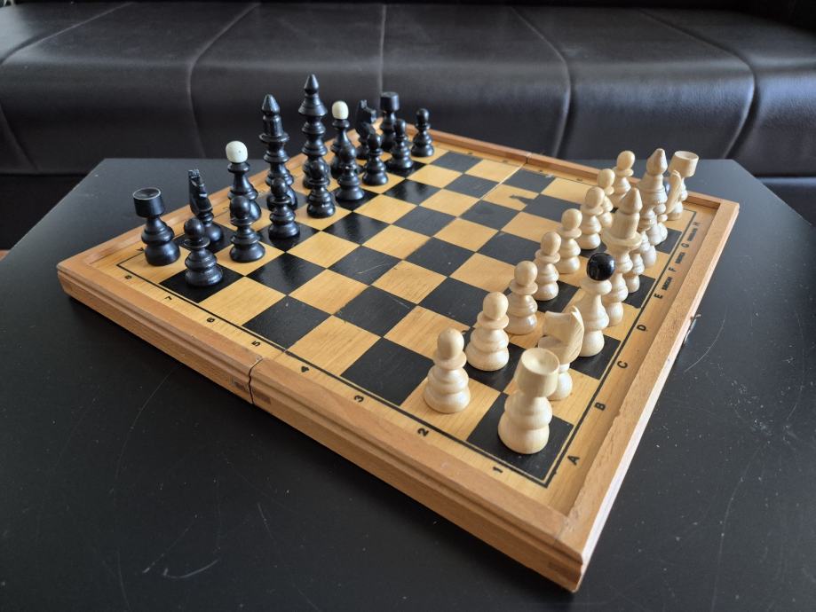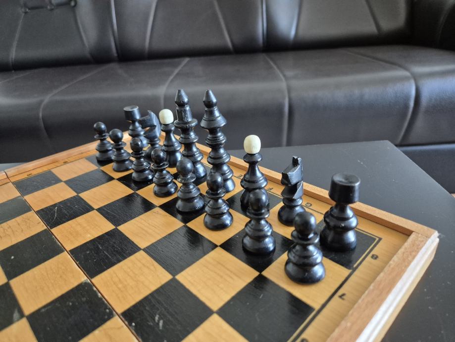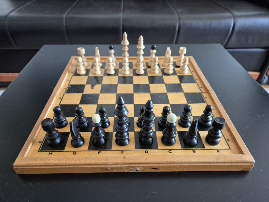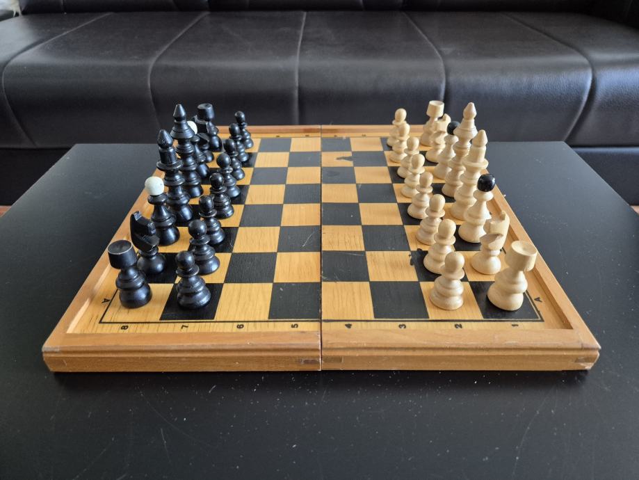 Drveni antiktni sah, Subozan Jugoslavija, drvene figure, dimenzije 30x30cm.