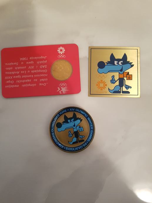tri izuzetno očuvana suvenira ZOI u Sarajevu.vučko,medaljon