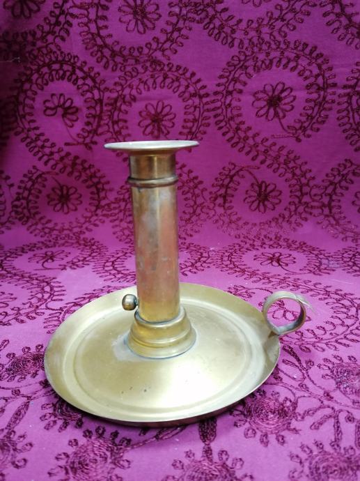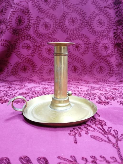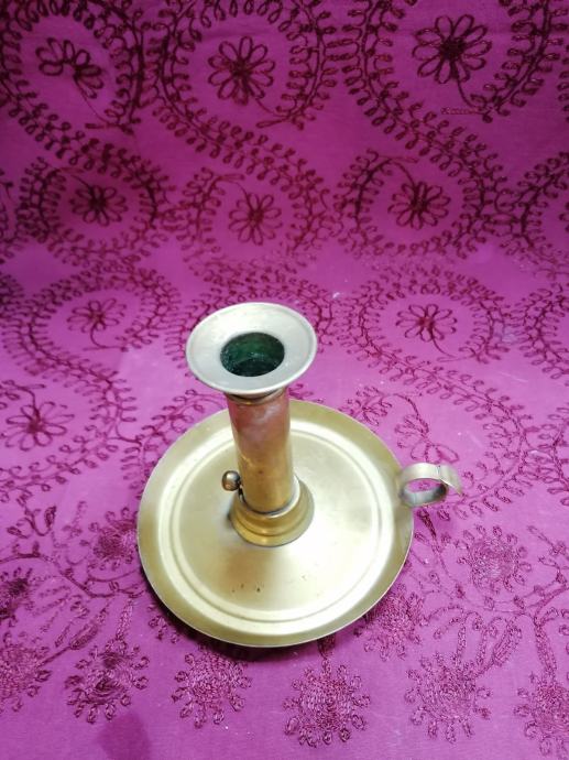 Antik svjećnjak mjesečar sa mehanizmom za podizanje svijeća. Mesing. Visina 13 cm, promjer 14 cm. Dobijete predmet sa slika.