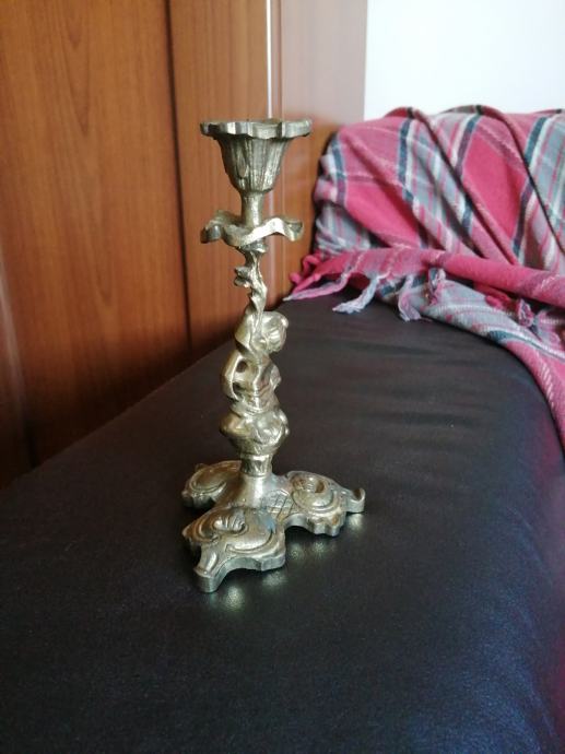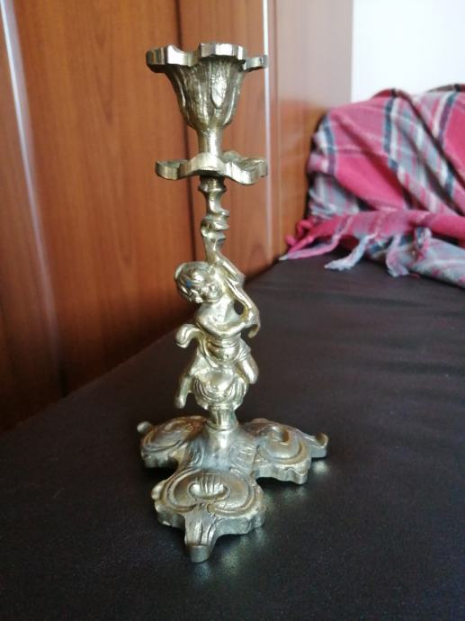 Svječnjak od mesinga s figurom anđela dosta masivanvisina 17cm.
